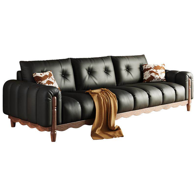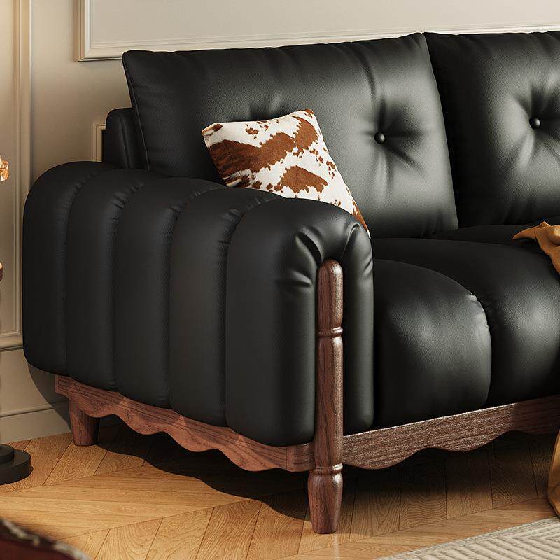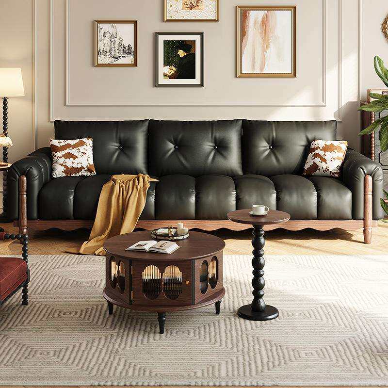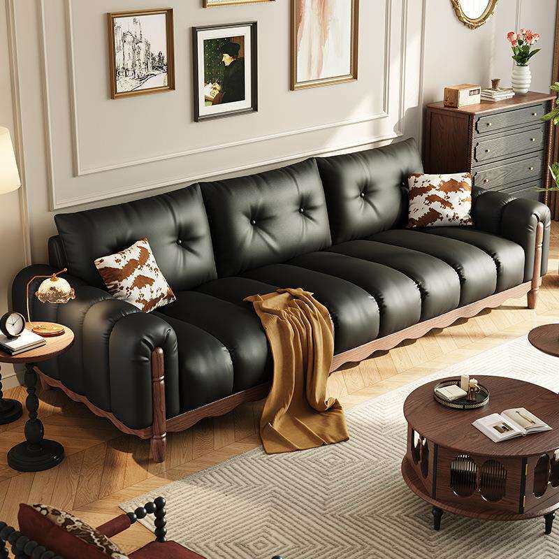法式复古白蜡木实木沙发客厅家用中古风小户型直排油蜡皮艺沙发