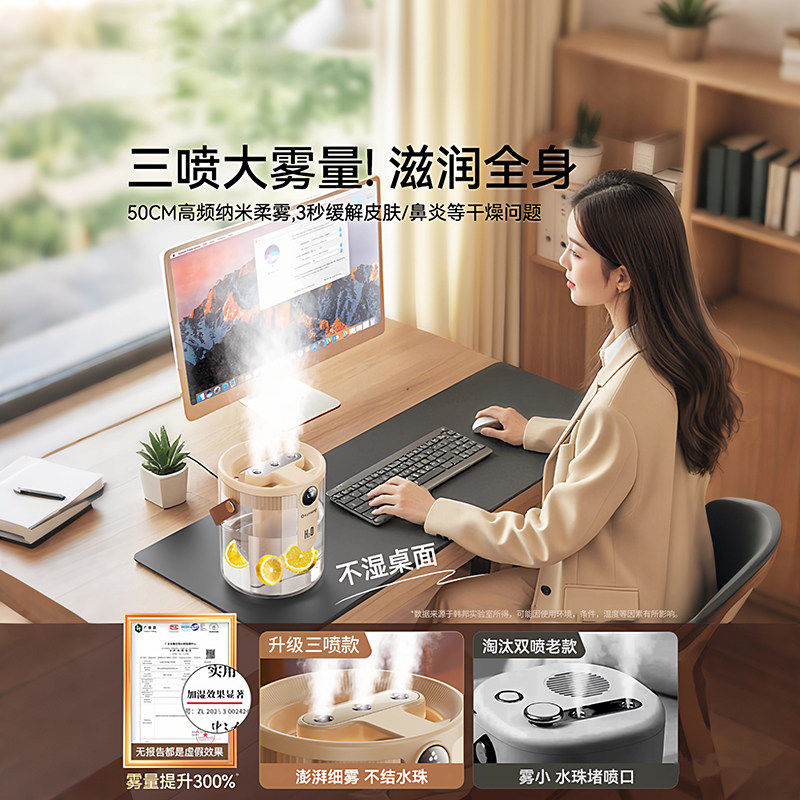 【董字晖精选】2025新款加湿器小型三喷大雾量办公室桌面迷你家用卧室空调房孕妇婴儿车载静音容量补水保湿器