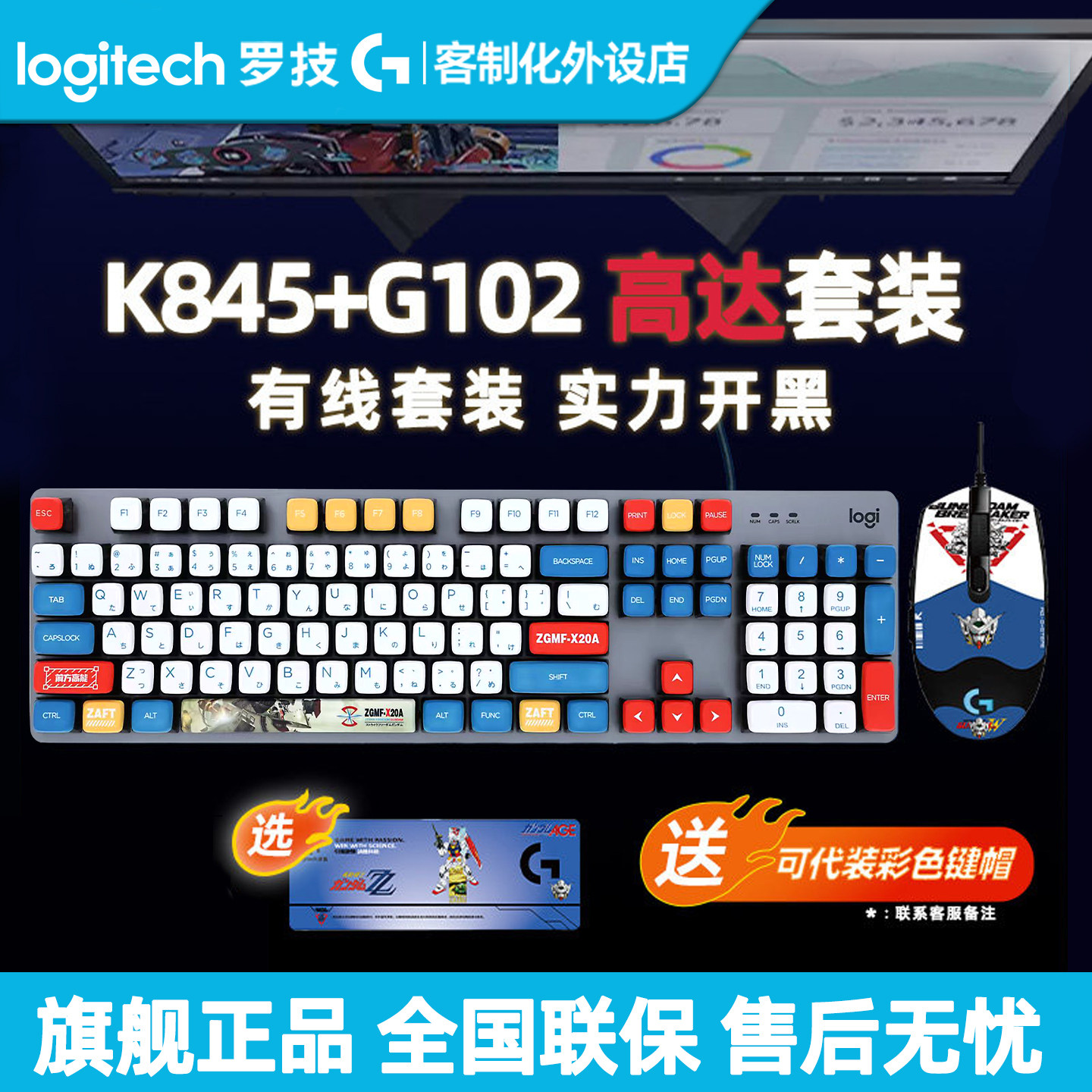 罗技K845机械键盘G102有线鼠标套装电脑办公电竞游戏高达耿鬼键鼠