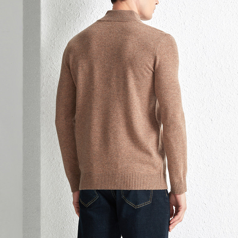 恒源祥中年男士羊毛衫时尚休闲半高领拉链针织衫纯色套头毛衣春季