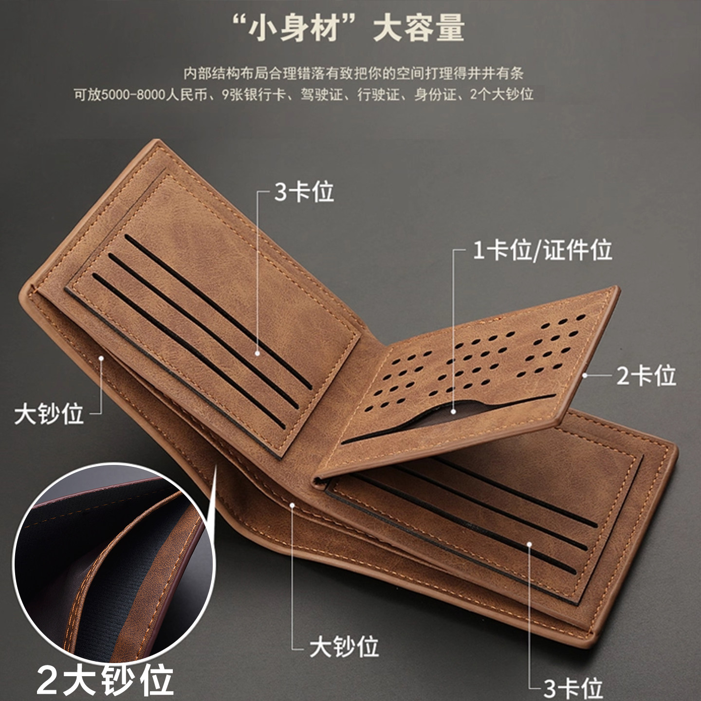 钱包男士横款时尚短款钱夹高级感复古皮夹卡包多隔层票夹零钱卡夹