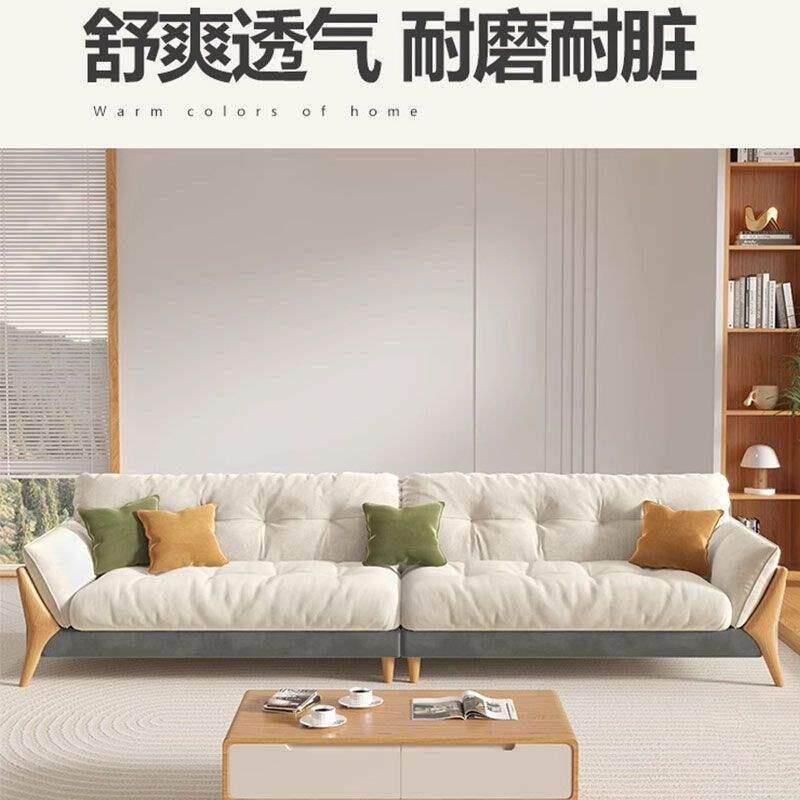 日式原木布艺沙发沙发客厅小户型北欧新款奶油直排现代云朵简约P^