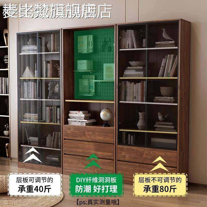 麦比梵全实木书柜书架一体组合现代简约客厅家用玻璃门落地展示柜储物柜床笠拉车