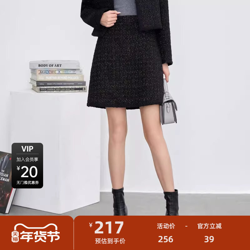 sdeer圣迪奥女装小香风套装复古高腰A字毛呢短裙S23481304