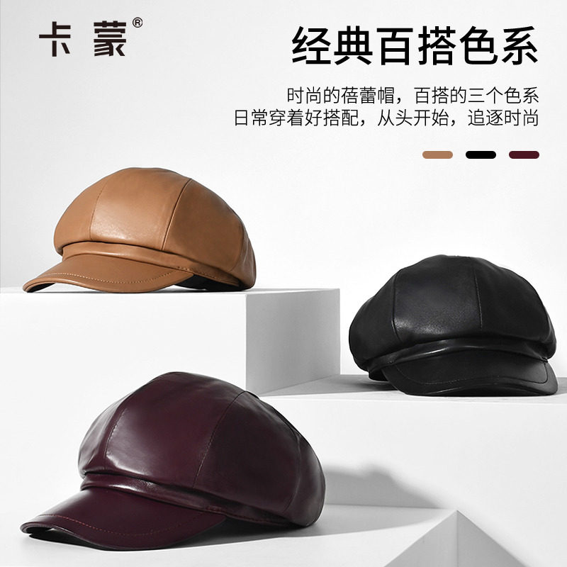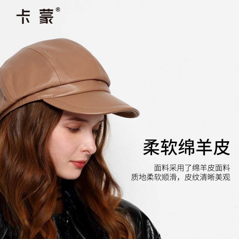 卡蒙绵羊皮鸭舌帽女士秋冬保暖舒适羊皮帽子送礼棒球帽高档礼盒装