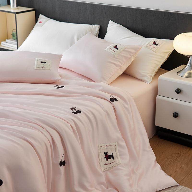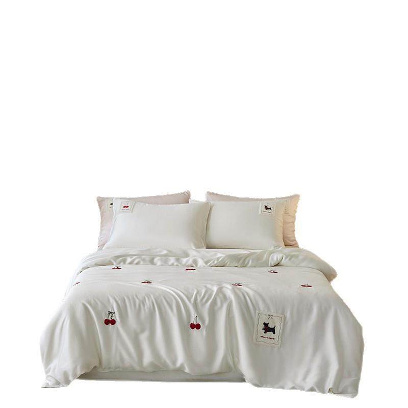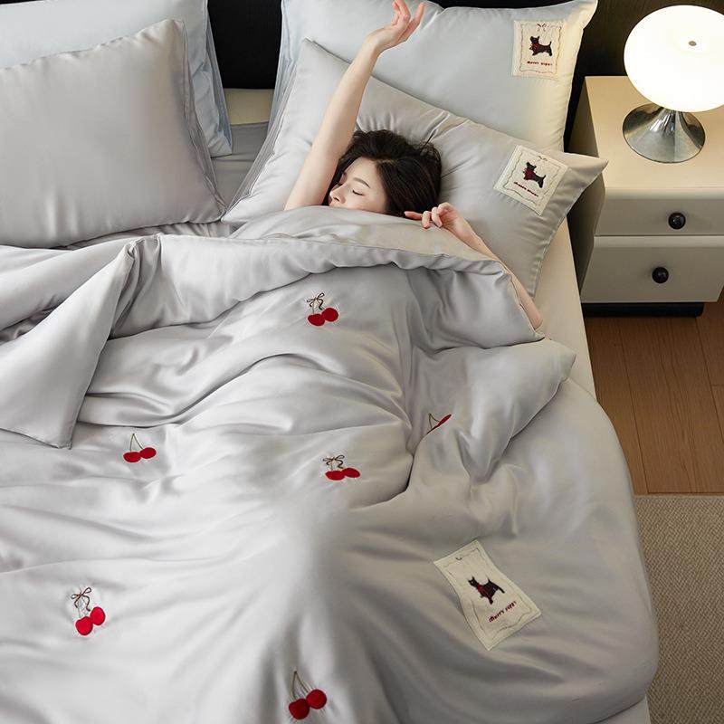少女心60支兰精天丝夏季床品四件套丝滑凉感裸睡樱桃刺绣被套床单