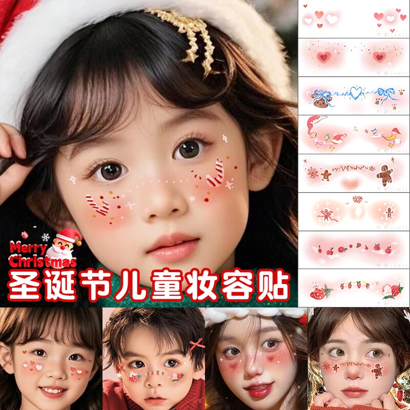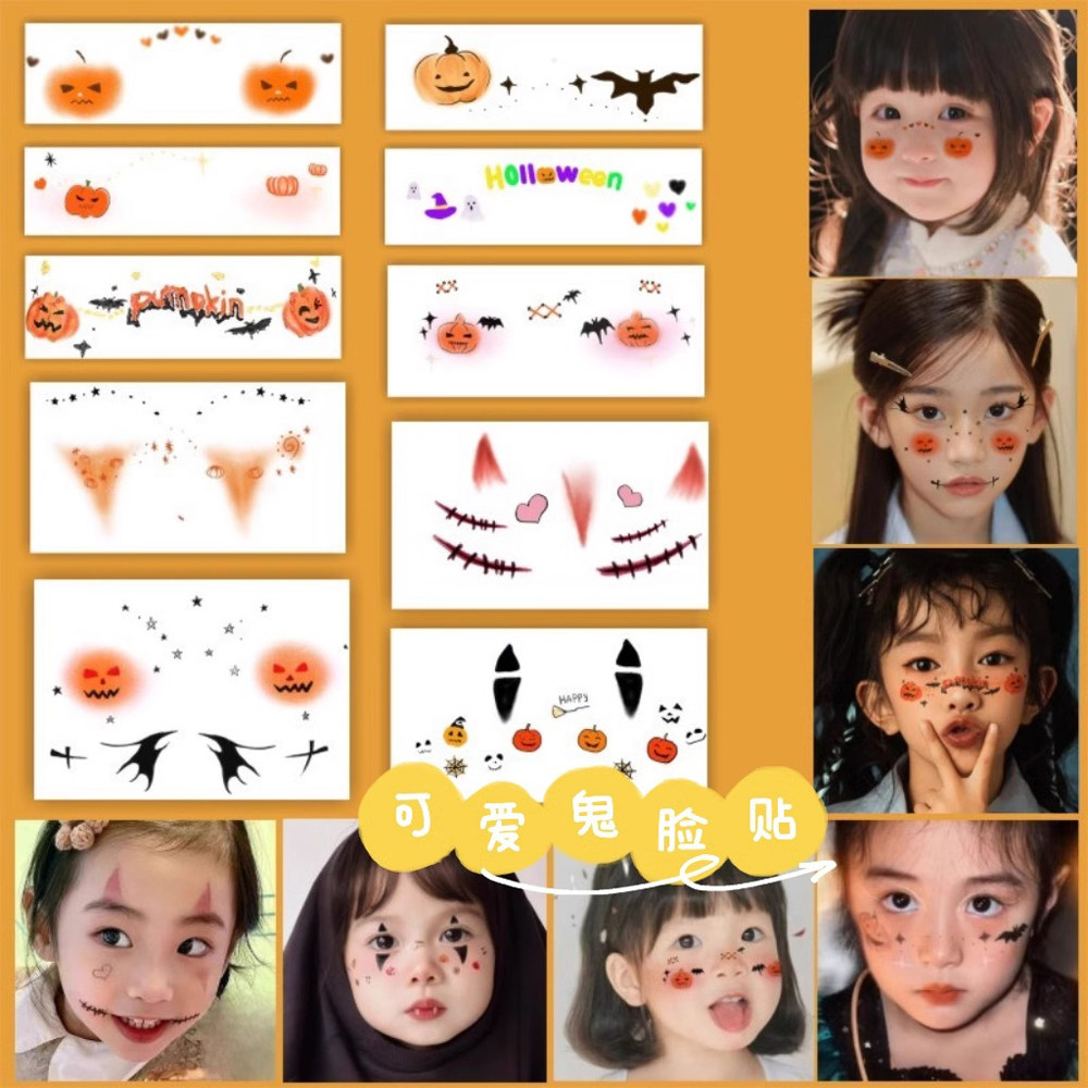 万圣节儿童纹身贴卡通南瓜女巫小丑女孩装扮腮红幼儿园装饰脸贴恐怖妆容贴纸蜘蛛蝙蝠化妆cos写真道具圣诞节