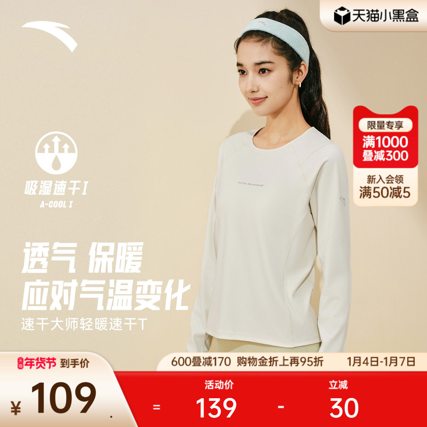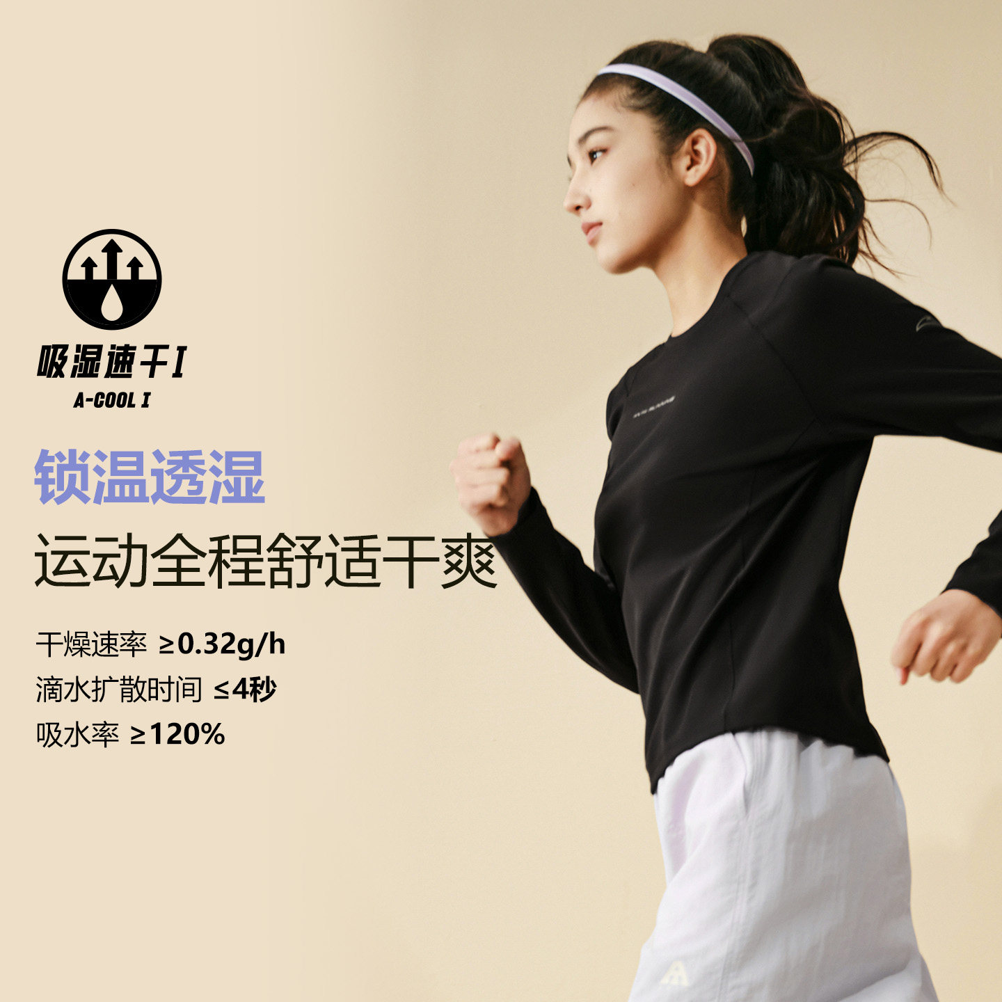 安踏速干大师丨高弹跑步长袖T恤女冬季磨毛透气吸汗训练运动上衣