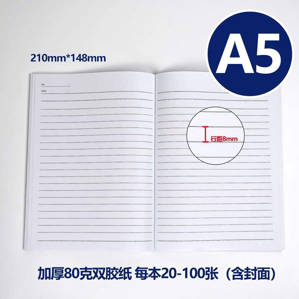 16k牛皮纸笔记本子初中生专用高中生大a4作业本学习横线本单行本练习本簿软面抄加厚16开记录本记事本日记本