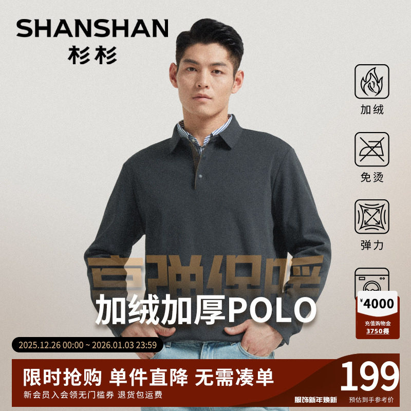 [加绒加厚]杉杉男士长袖t恤2025秋冬新款保暖上衣翻领polo衫男款