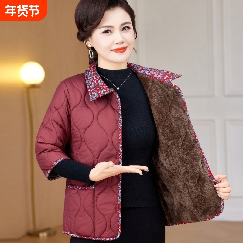 妈妈秋冬装德绒保暖棉衣短款加厚内胆中老年人女薄款小棉袄可外穿