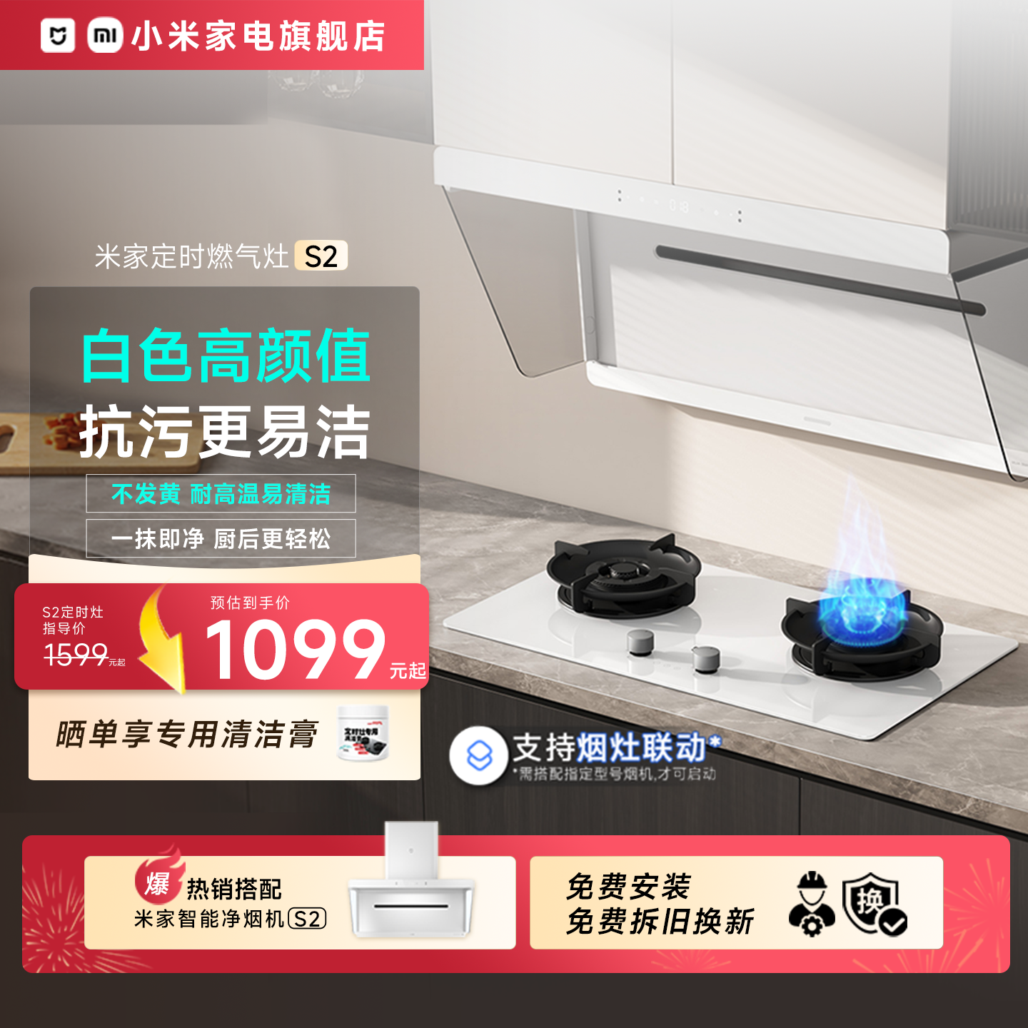 小米米家智能白色燃气灶S2定时家用嵌入式天然气炉灶厨房煤气灶