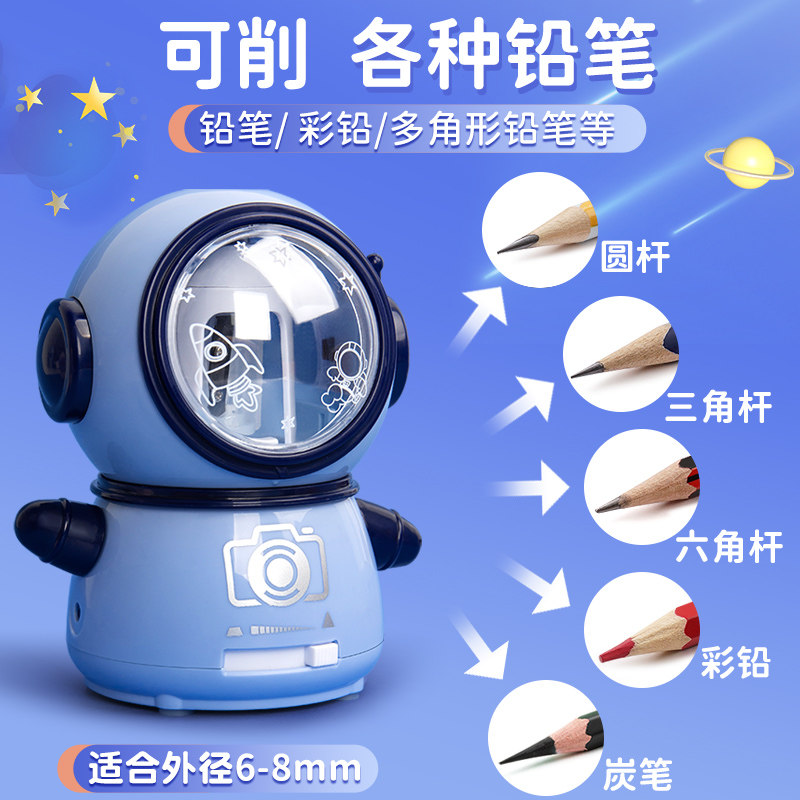 电动转笔刀卷笔刀全自动削笔器小学生专用三角洞洞铅笔神器粗细幼儿园美术儿童文具刨笔机宇航员太空人旋绞钻