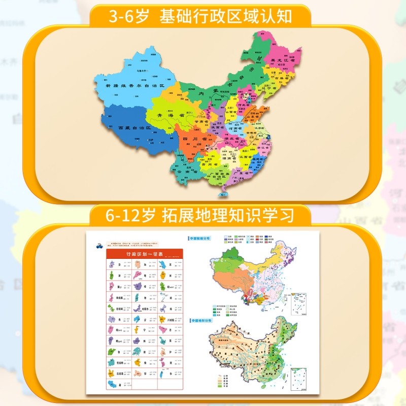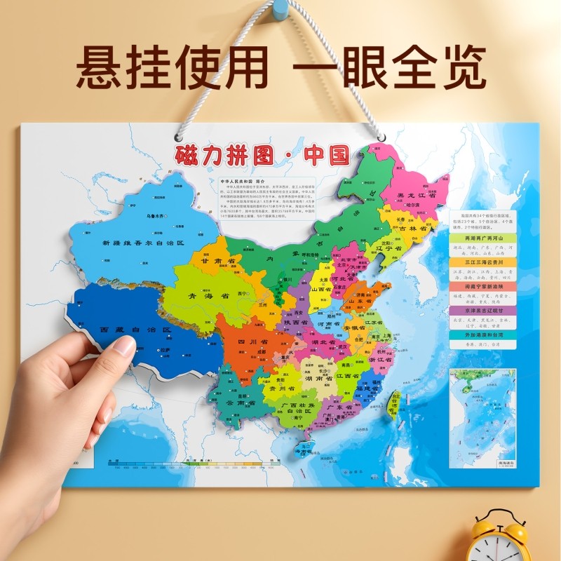 中国地图磁力磁性拼图3d立体磁铁挂墙贴冰箱贴磁吸式地理行政新版