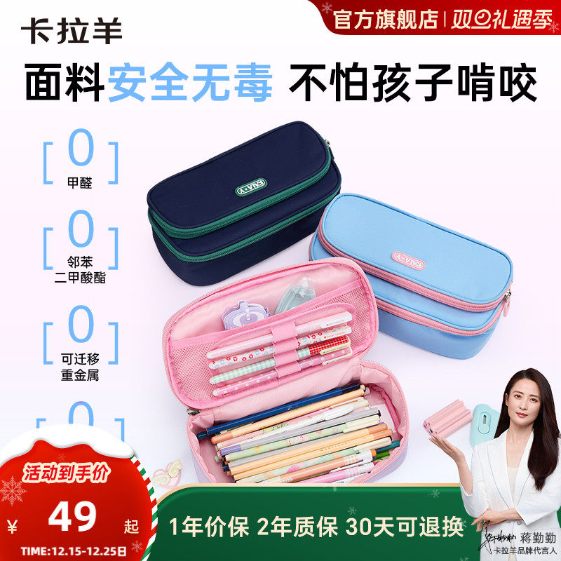 卡拉羊考试专用大容量多隔层笔袋铅笔收纳盒糖果色学院风A标面料安全无毒抑菌耐磨初中生小学生考研文具盒