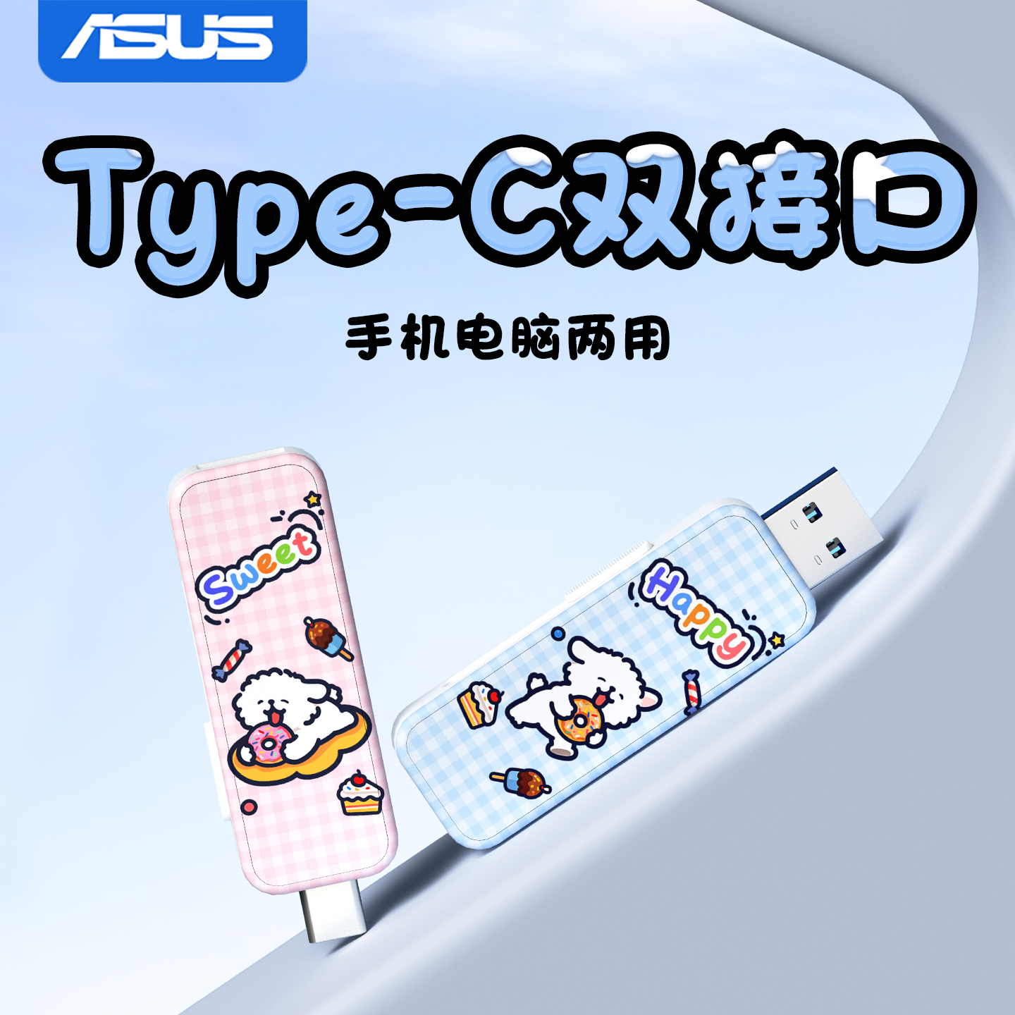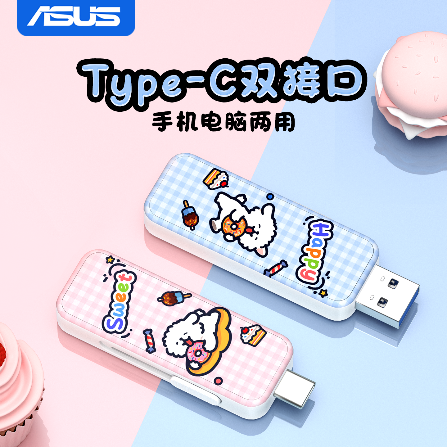 华硕u盘高速大容量typec双接口彩印定制优盘手机电脑两用女生款