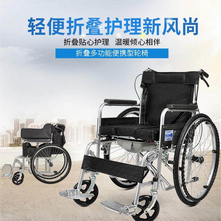 老人轮椅折叠老年人带坐便轻便便携手推车残疾人代步车