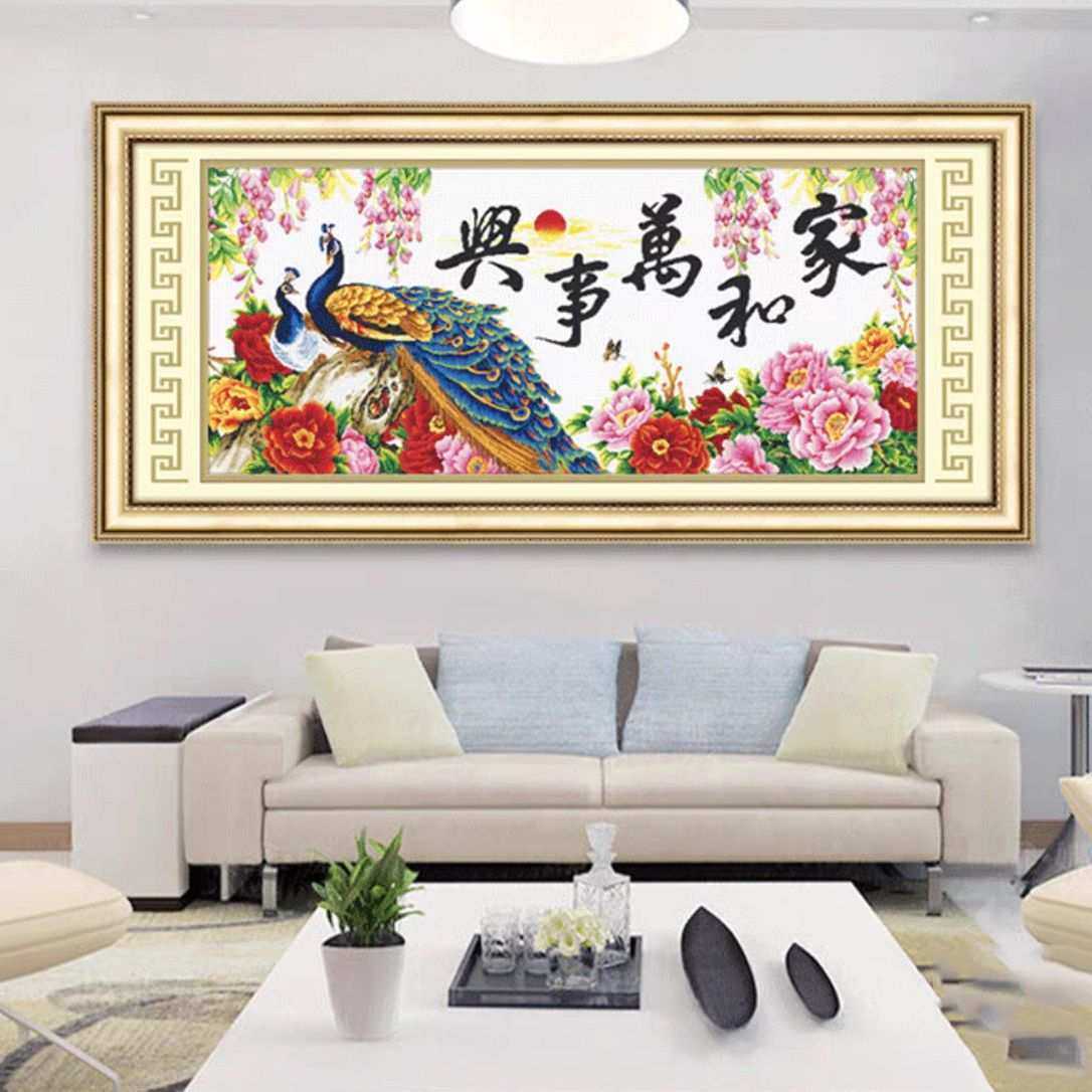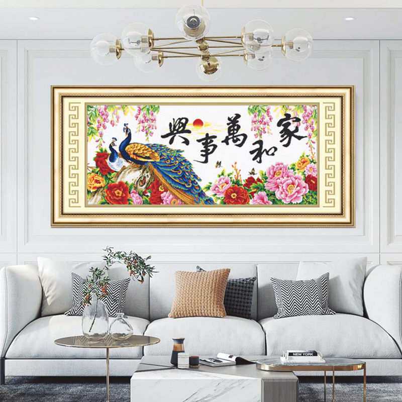 家和万事兴十字绣成品不带框纯手工已绣好2025年新款客厅孔雀牡丹