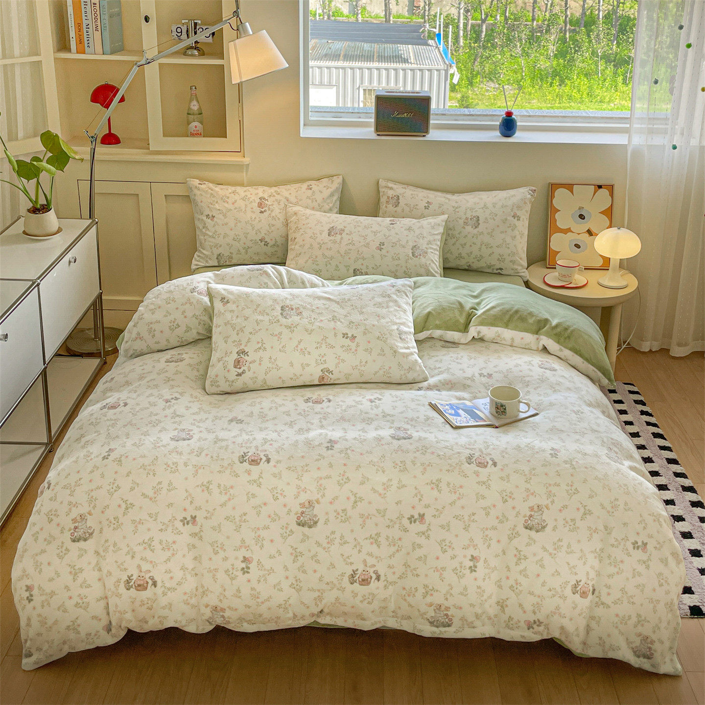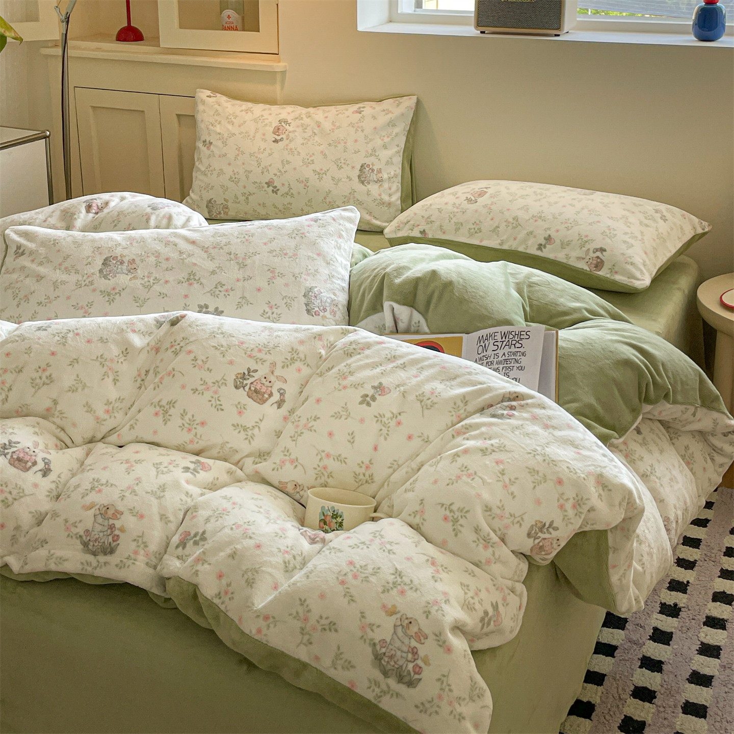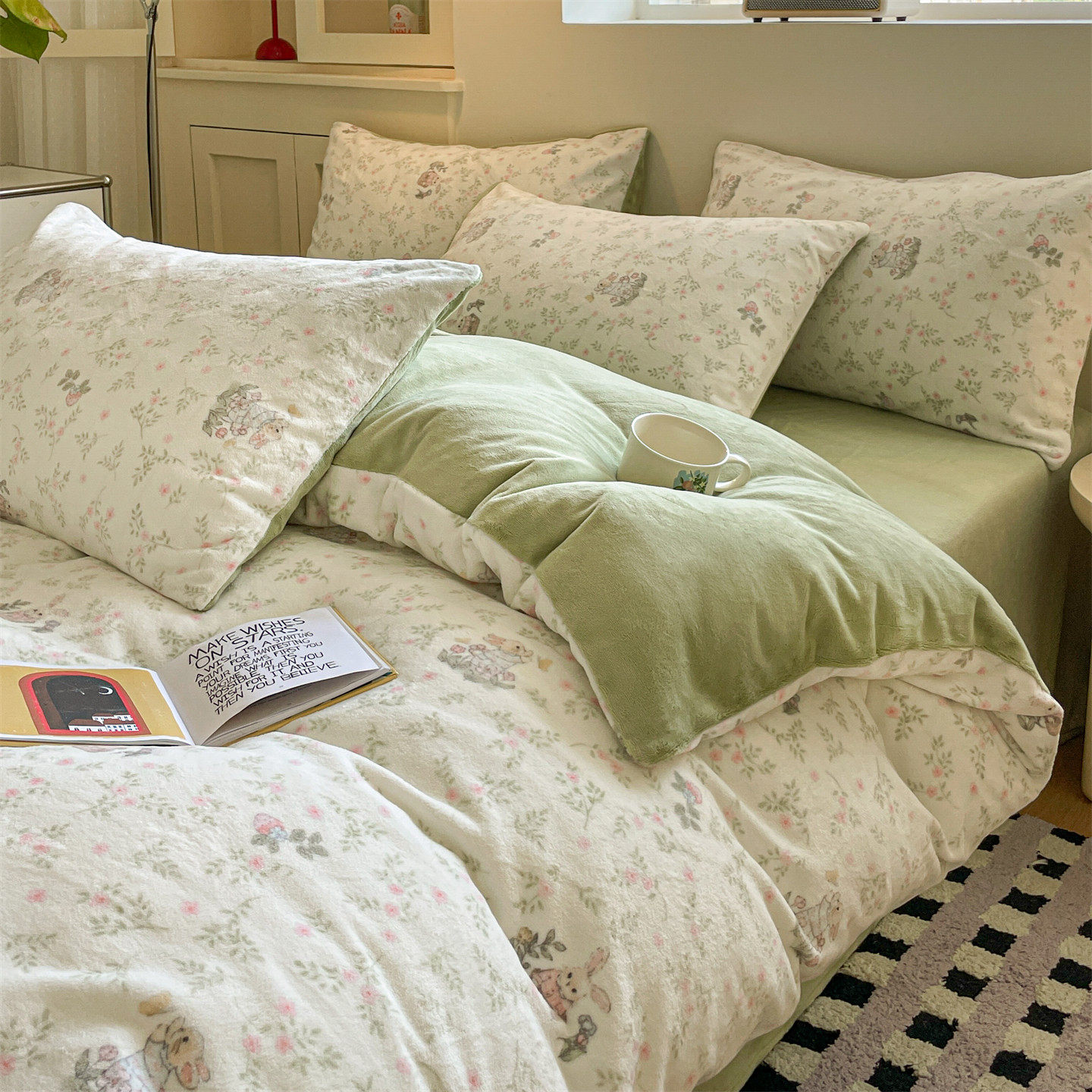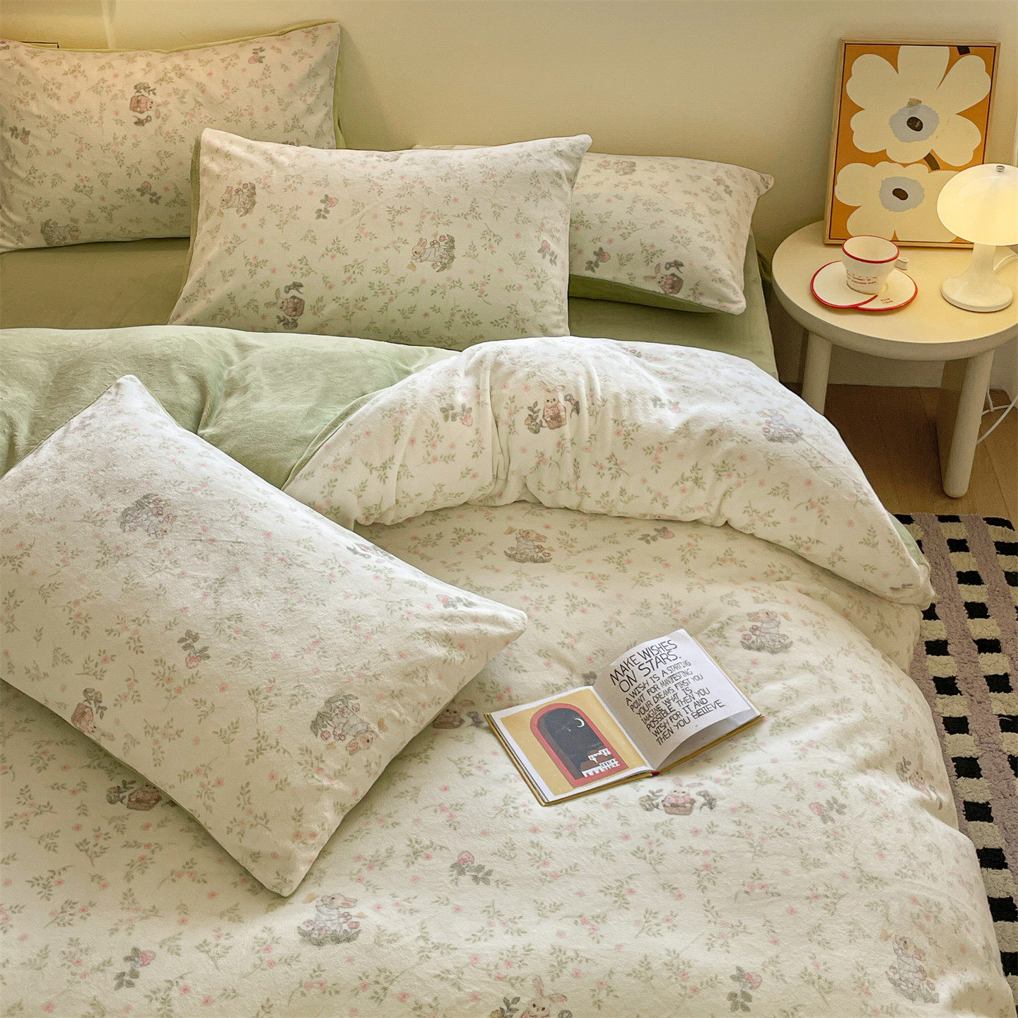 小清新牛奶绒床上四件套保暖毛绒床单被套