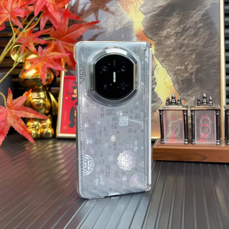 新年百福图双中轴适用华为matex7手机壳mateX6典藏版马年透明X5折叠镭射保护套X3全包防摔男女铰链保护外壳