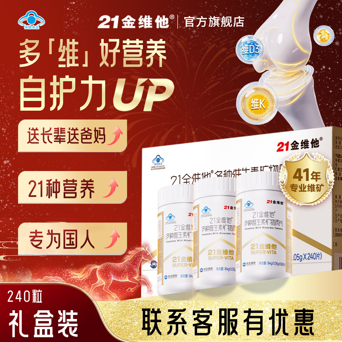 礼盒21金维他复合维生素80粒礼盒21种多维矿物质烟酰胺b族钙