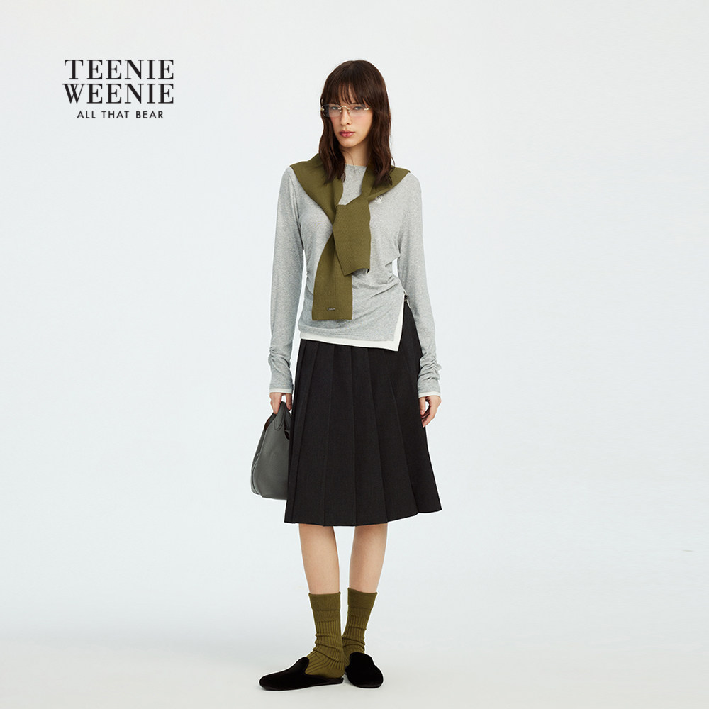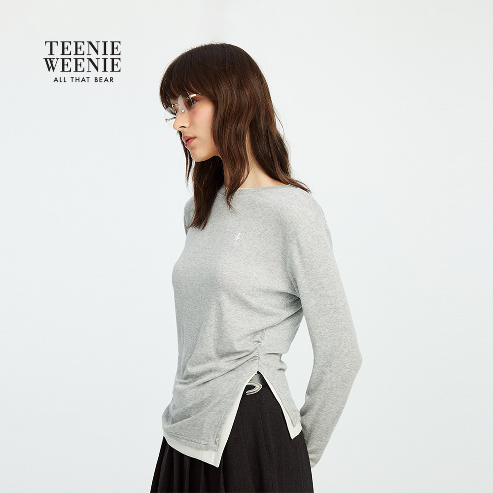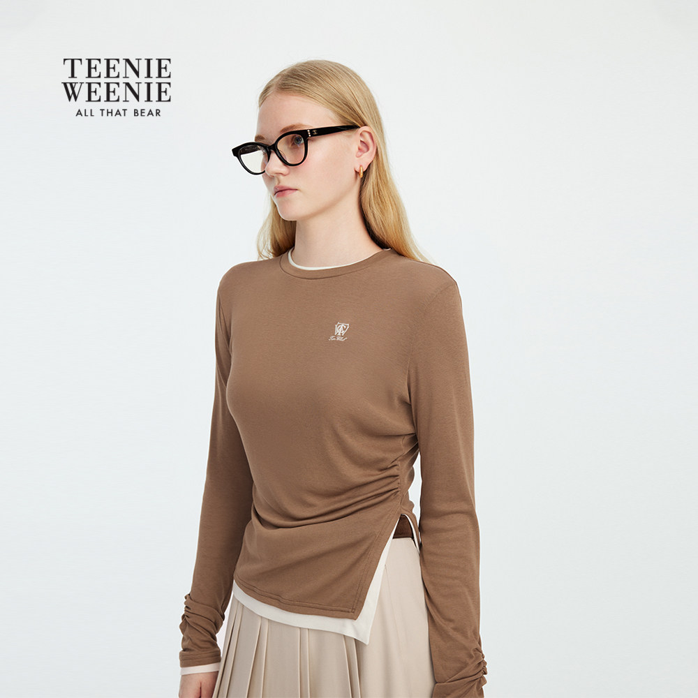 TeenieWeenie小熊女装T恤2025秋季新款时髦拼接收腰设计长袖上衣