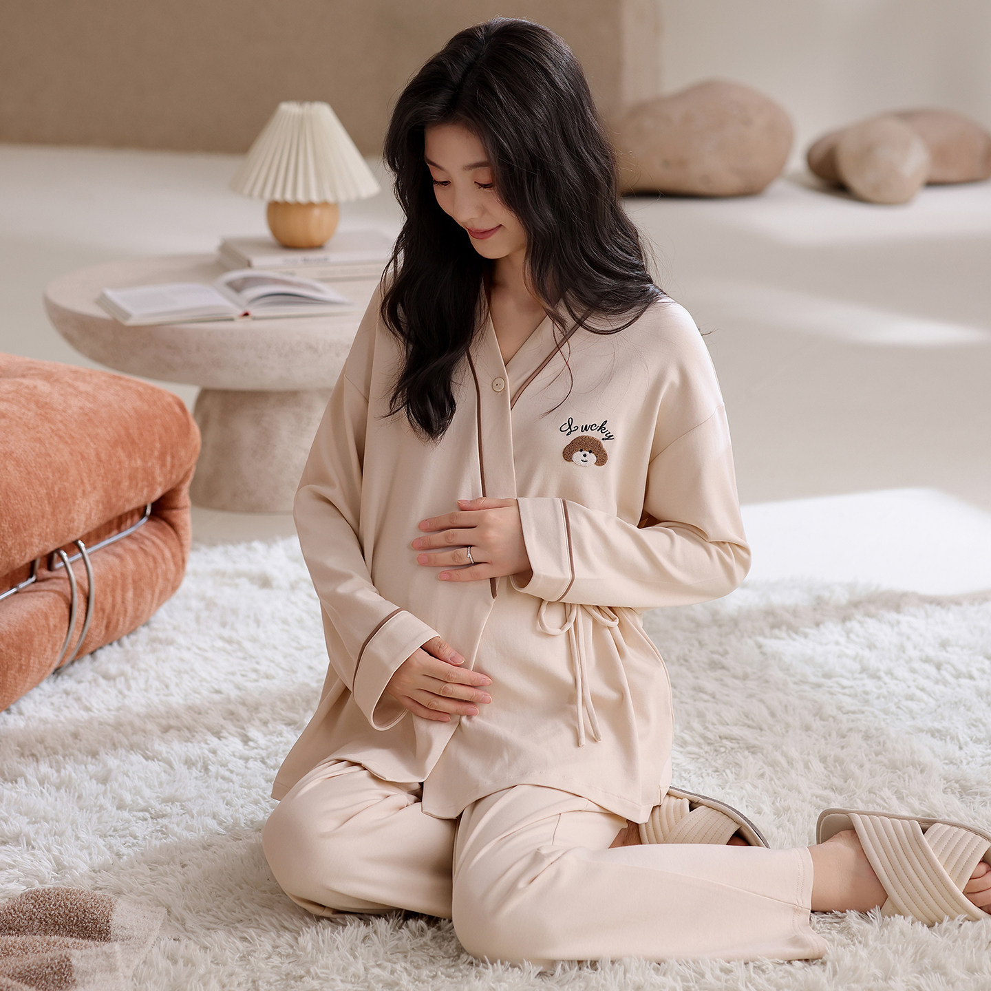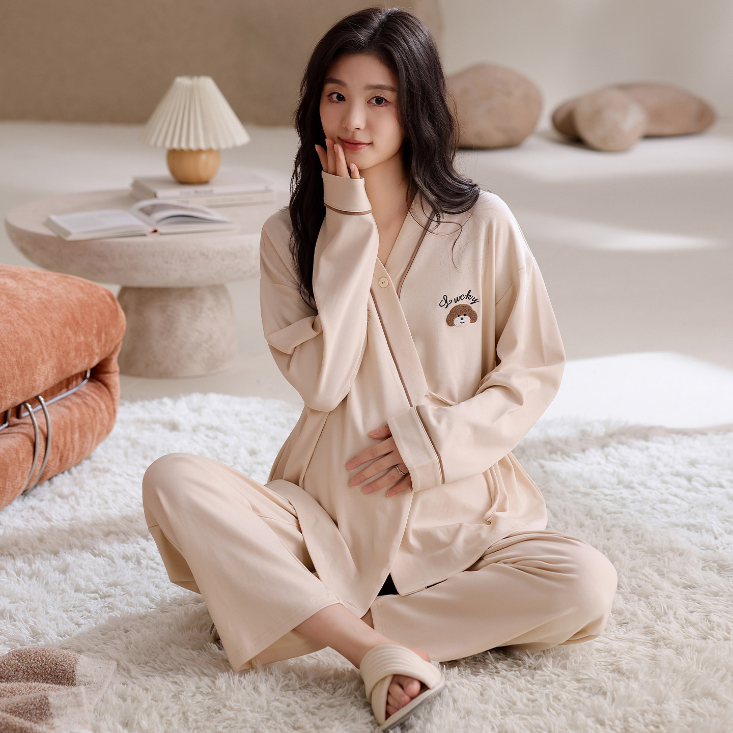 月子服纯棉春秋冬季产后12月份孕妇睡衣可外穿喂奶产妇哺乳家居服