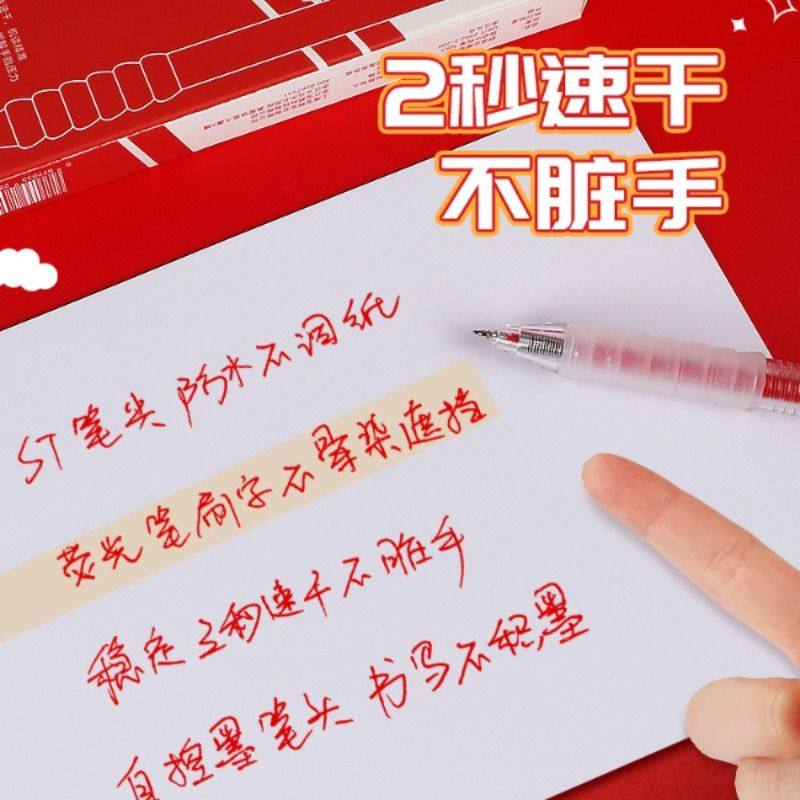 晨光中性笔按动式黑色水笔红色蓝色速干顺滑大容量学生用碳素笔