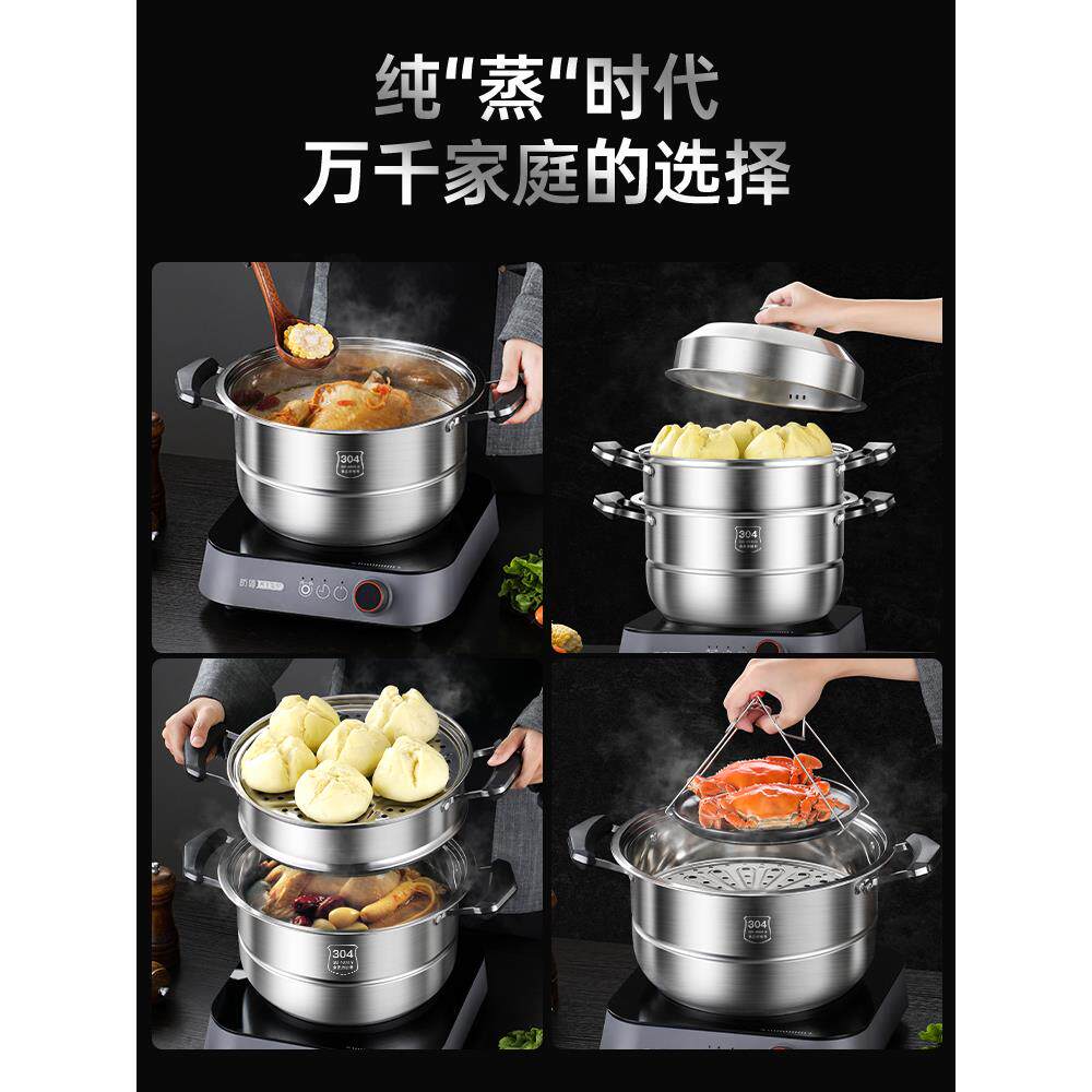 蒸锅大号304不锈钢家用2三层加厚蒸笼馒头四层蒸煮炖电磁炉煤气灶