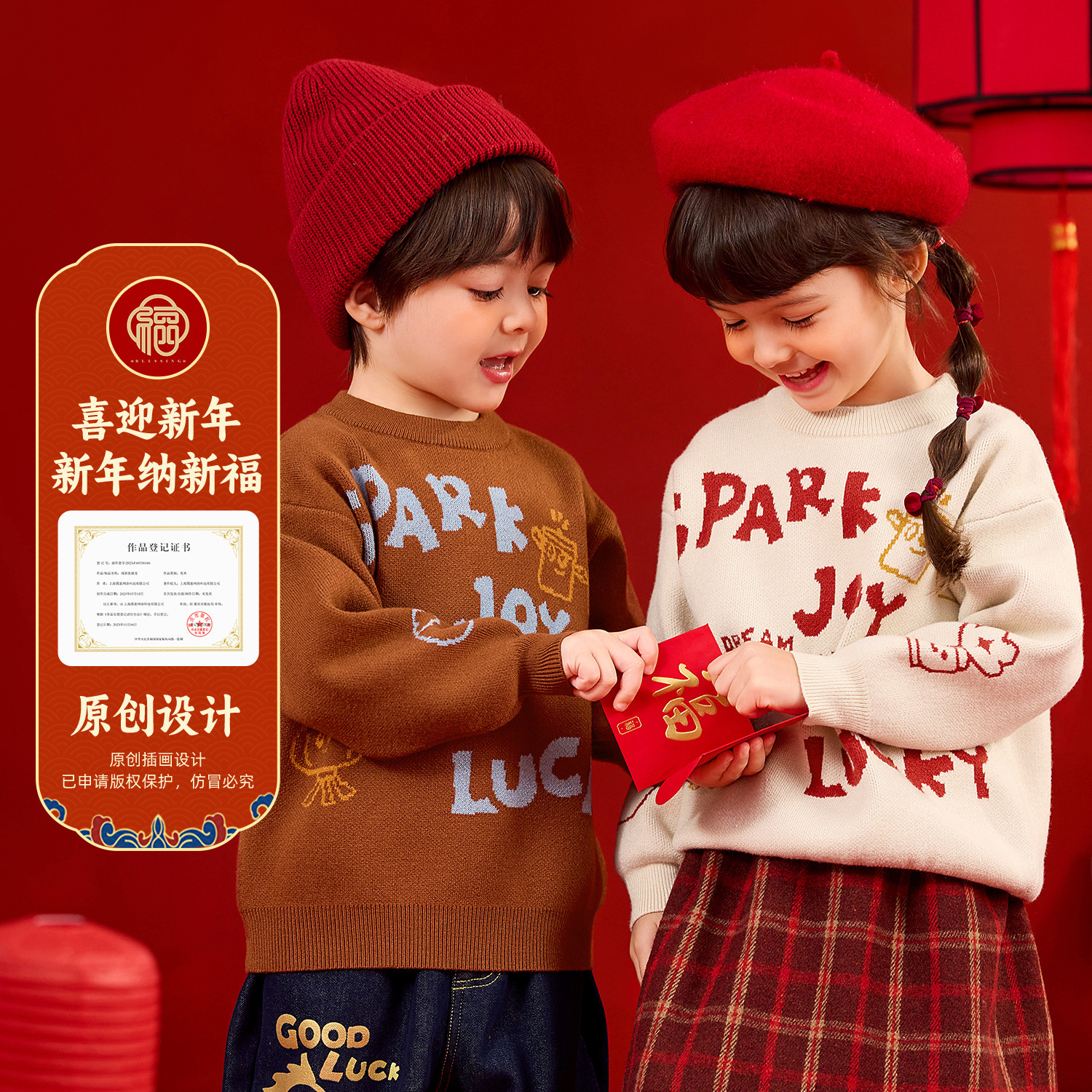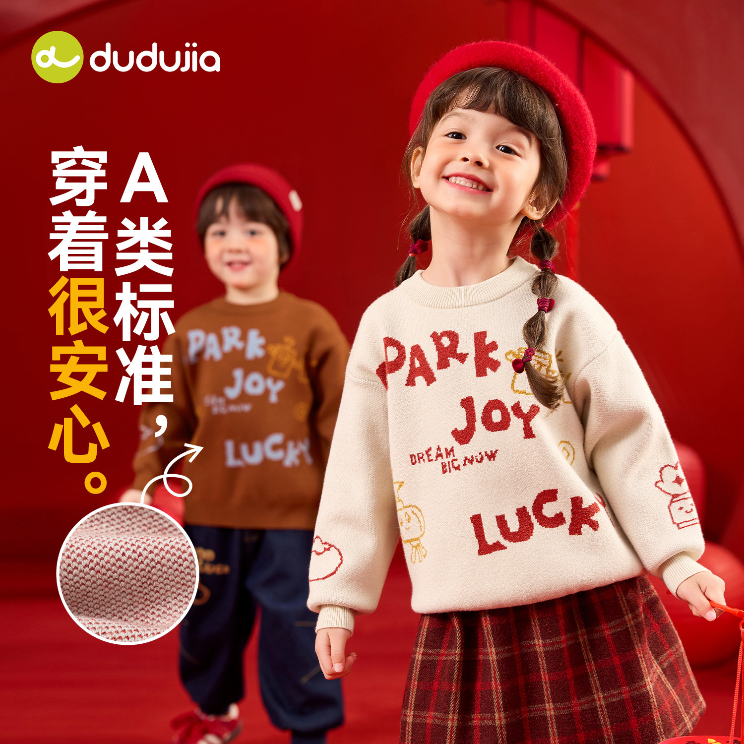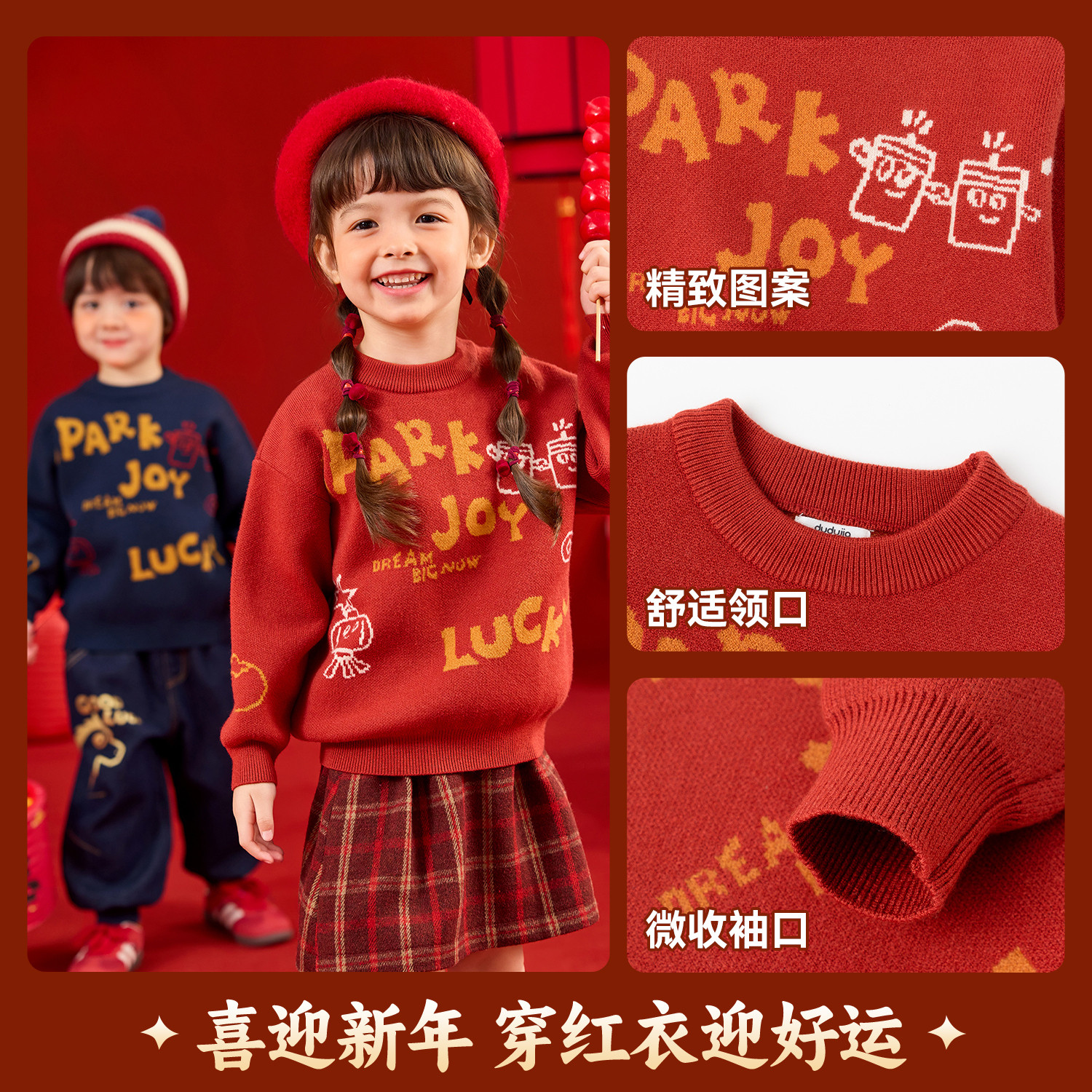 嘟嘟家儿童拜年服新年红色喜庆唐装过年衣服宝宝男童女童加厚毛衣