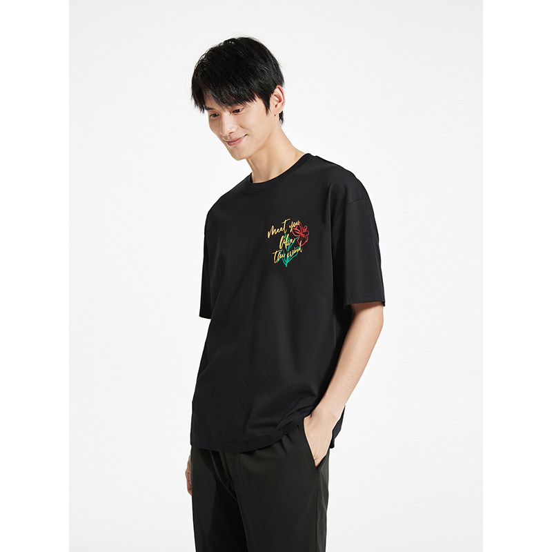 【春上新系列凉感】杰克琼斯男装新款纯色打底衫刺绣短袖男款T恤