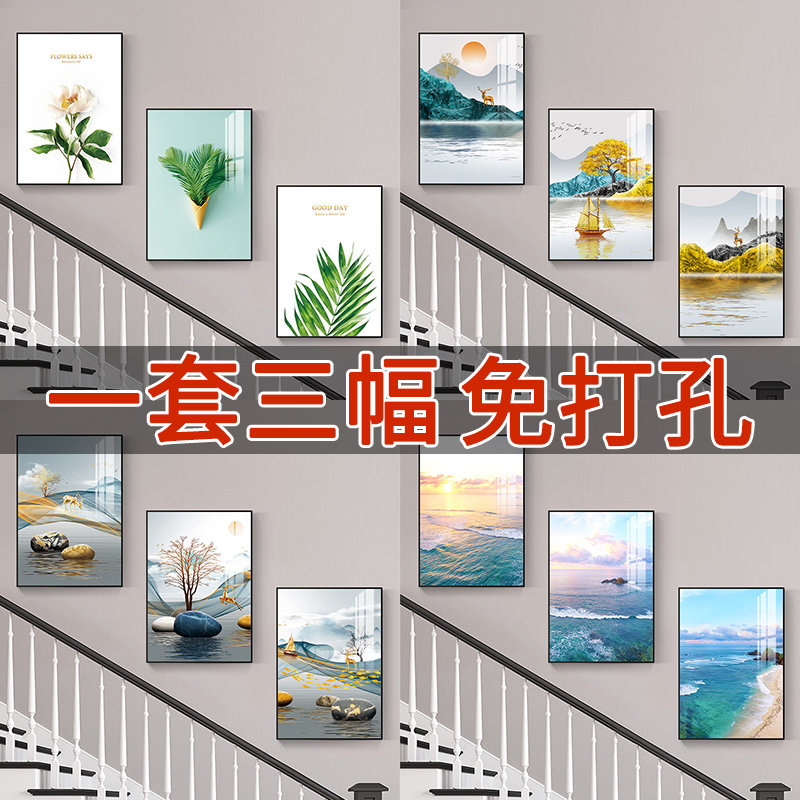 复式楼梯口间装饰画现代简约楼道三联挂画客厅玄关走廊过道墙壁画