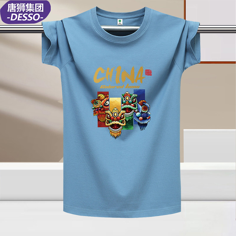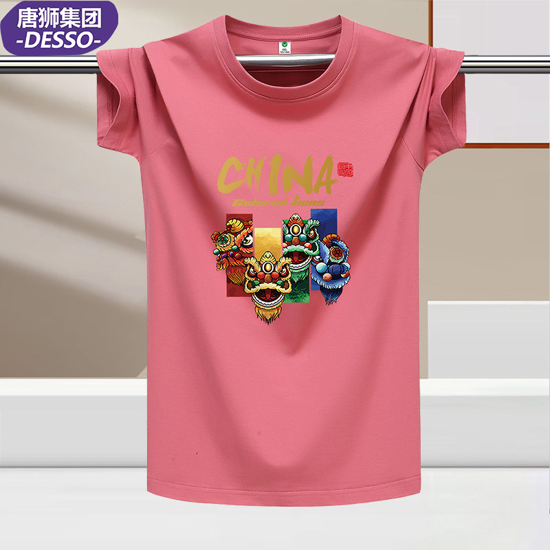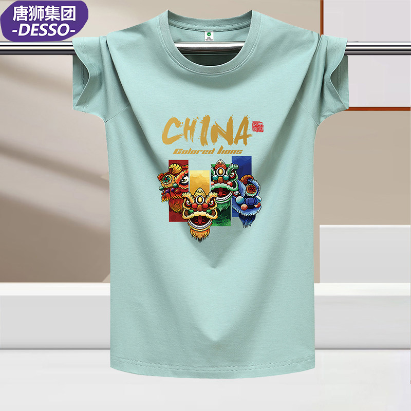 唐狮集团DESSO印花短袖T恤男夏季新款重磅潮牌情侣大码纯棉体恤衫