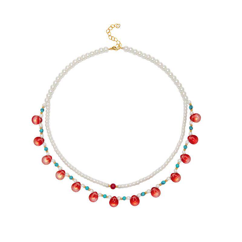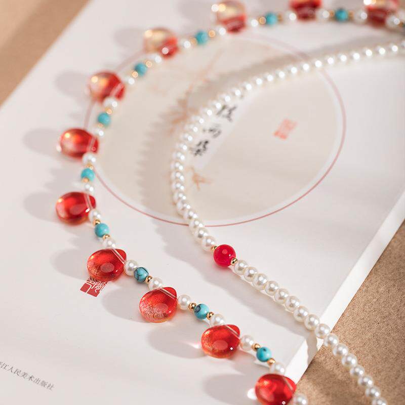 簪娘古风汉服项链女红色琉璃水滴双层璎珞明制坦领古装配饰软璎珞