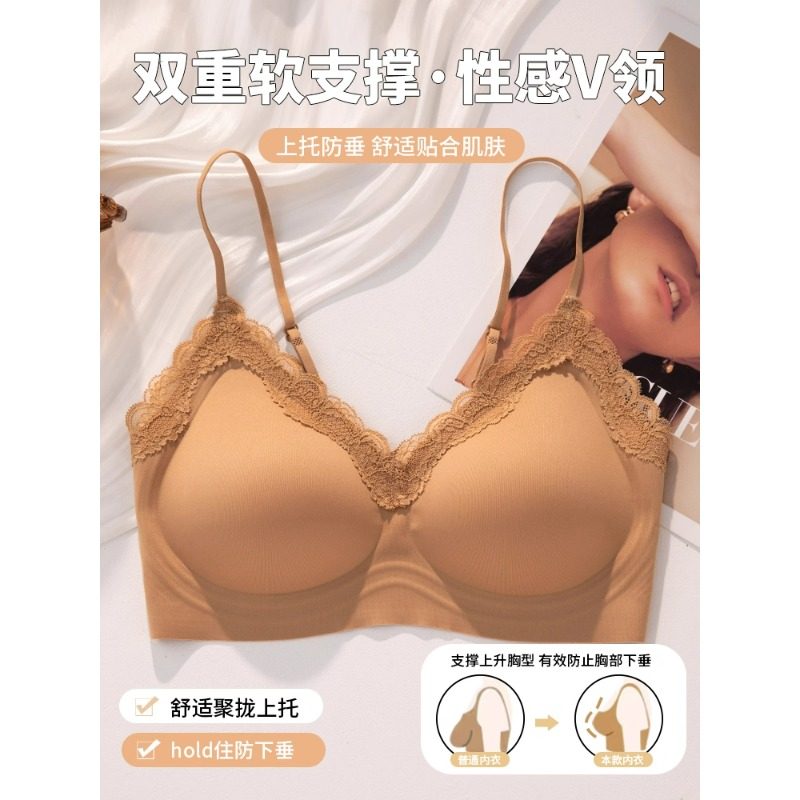 可外穿辣妹蕾丝无痕内衣女聚拢细肩带美背背心式文胸罩防下垂粉色