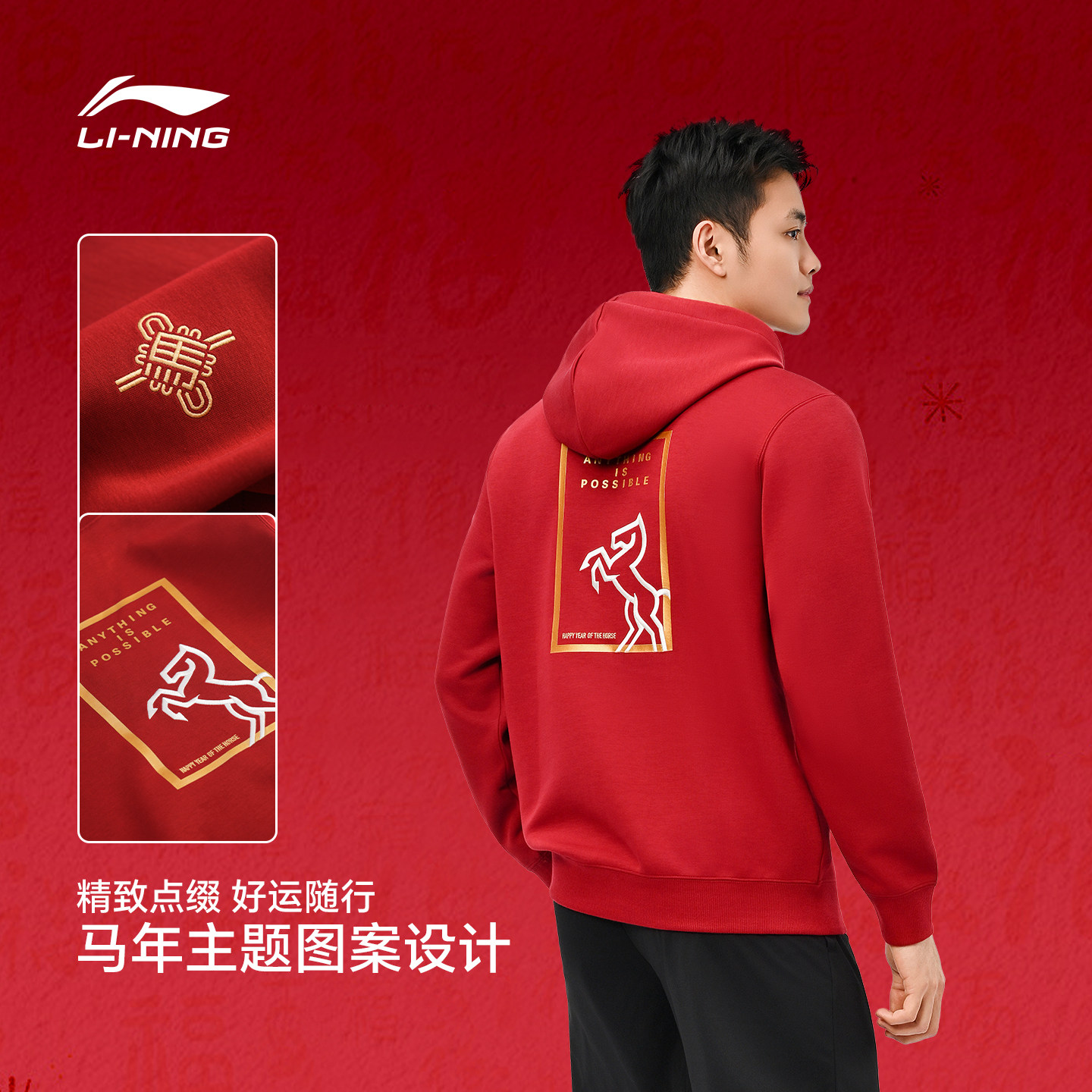 【2026年马年限定】李宁羽毛球服男女同款保暖套头连帽卫衣春季