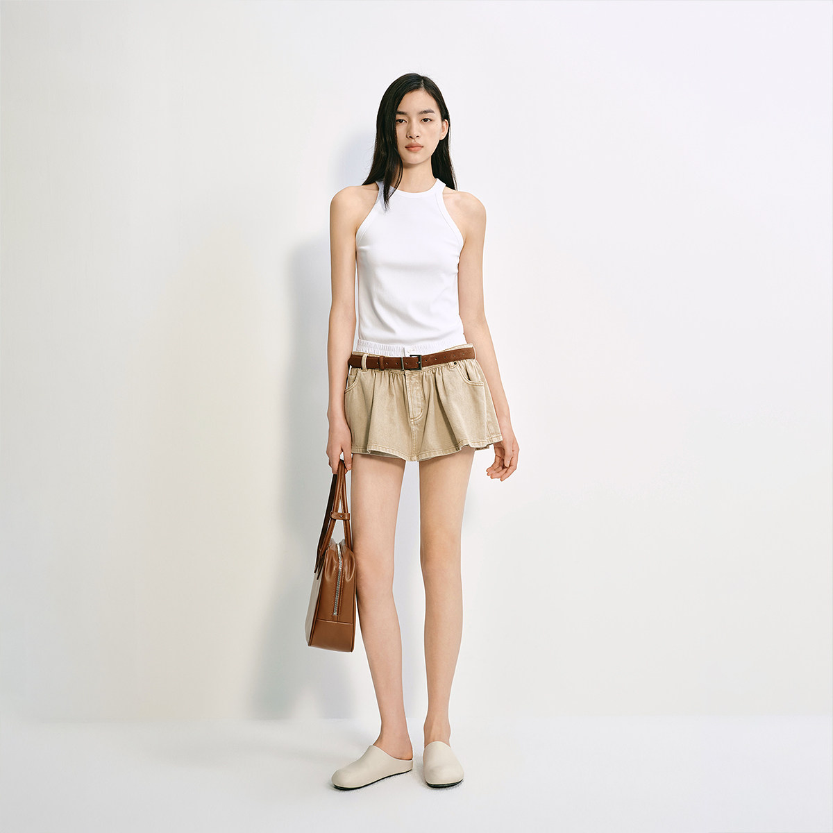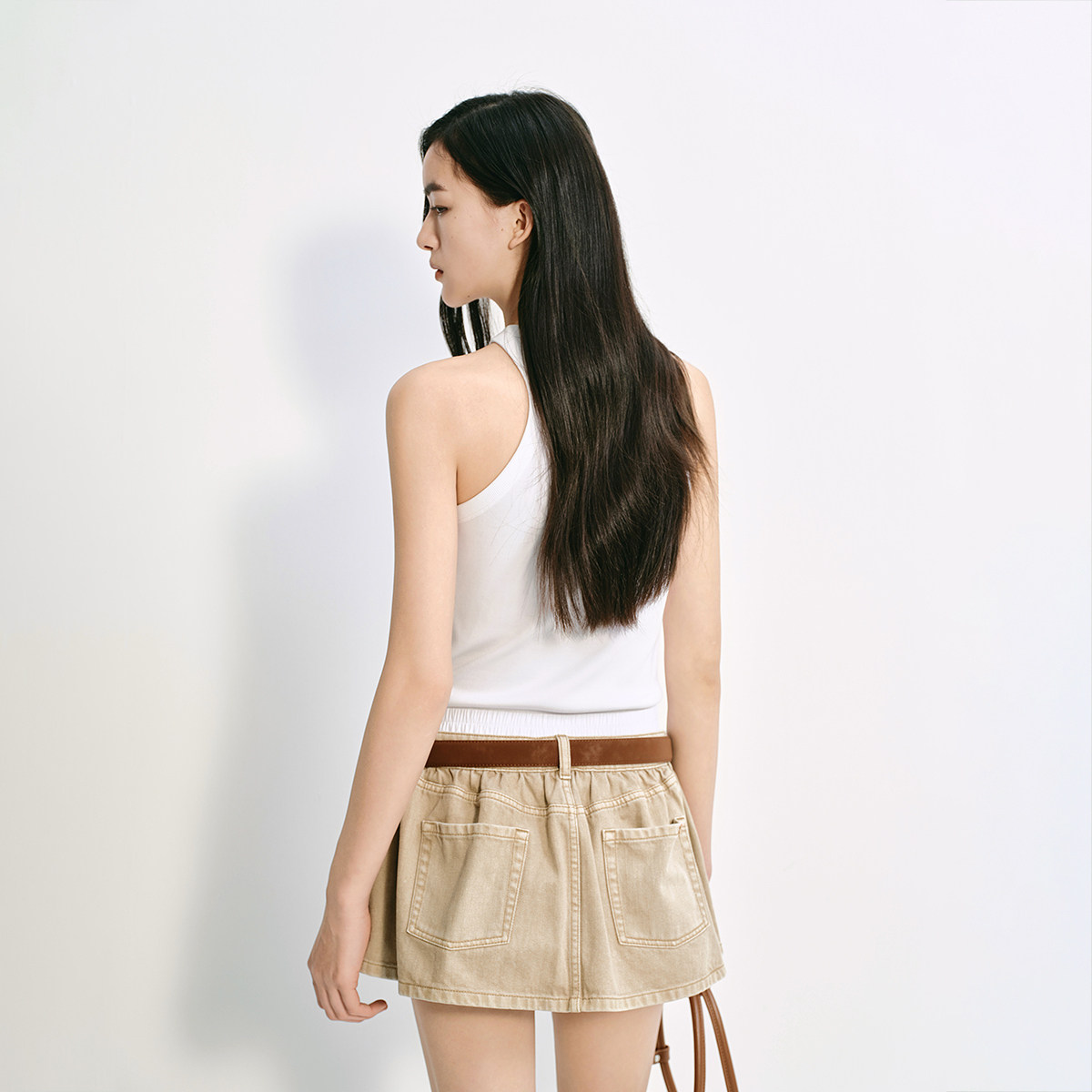 OCHIRLY欧时力 挖肩无袖针织背心女士上衣打底修身高级夏季