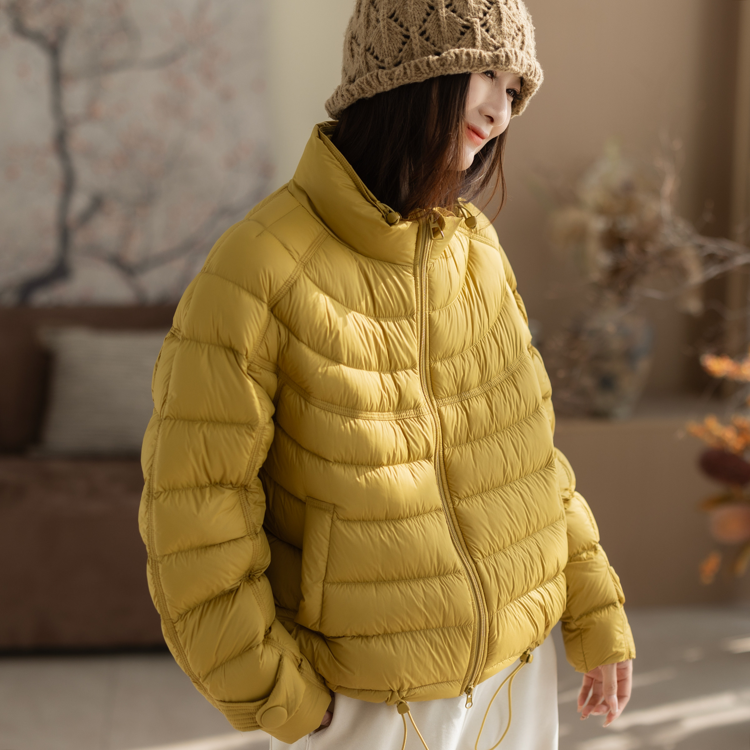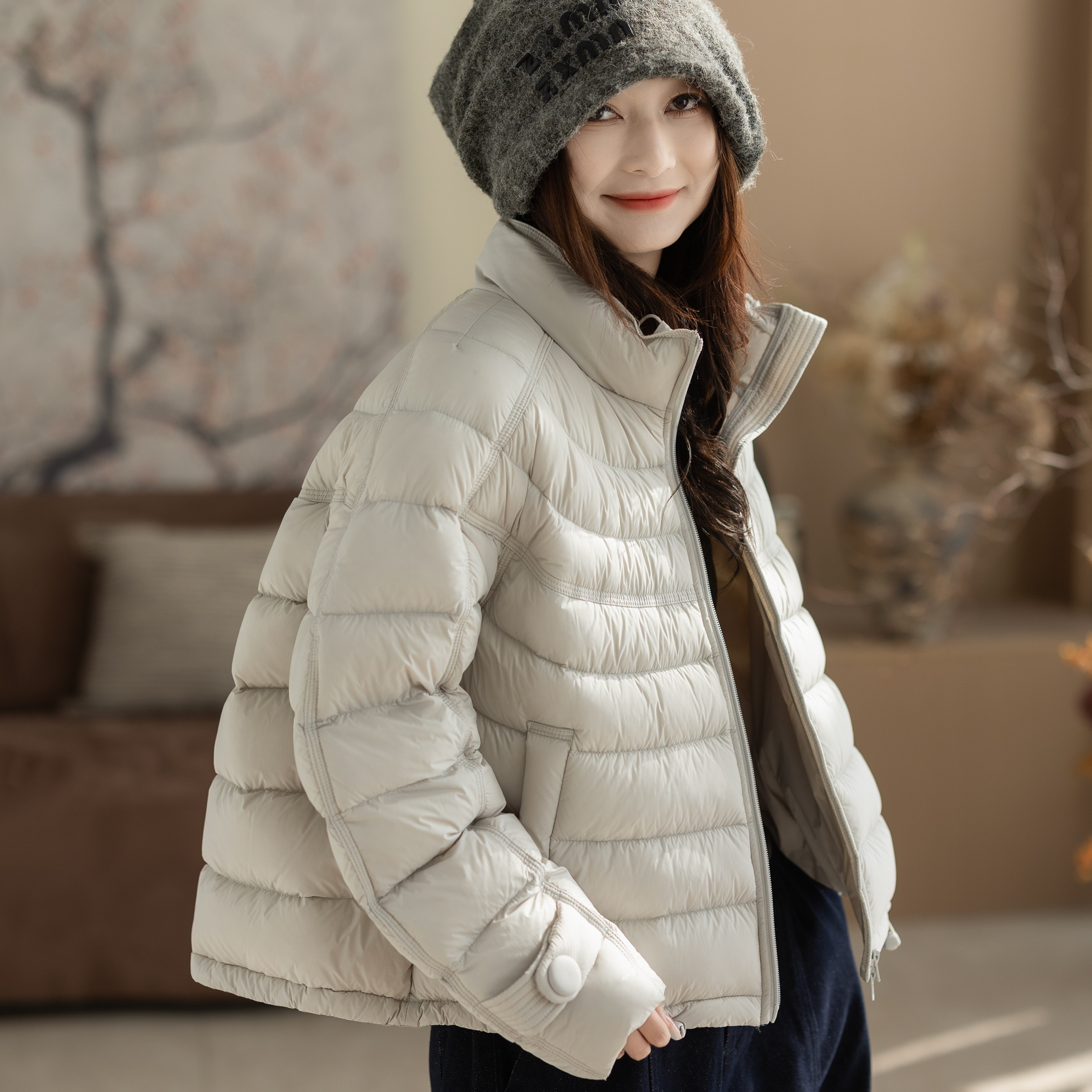 鸭鸭轻薄羽绒服女2025年秋冬反季短款立领修身舒适上衣内胆外套J