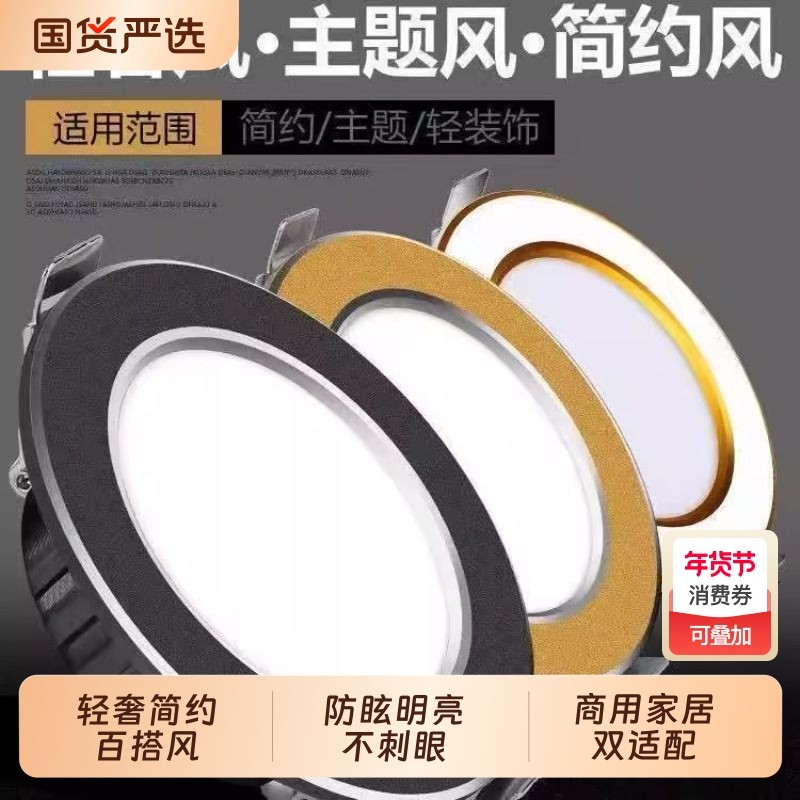 筒灯嵌入式led天花板家用客厅三色射灯圆形吊顶洞灯灯具卧室照明