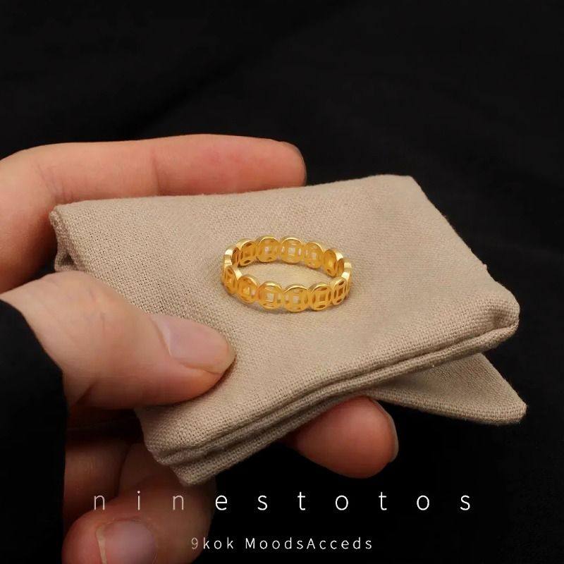 钱多多戒指高级感轻奢款女男士素圈金色戒指小众情侣对戒手饰品