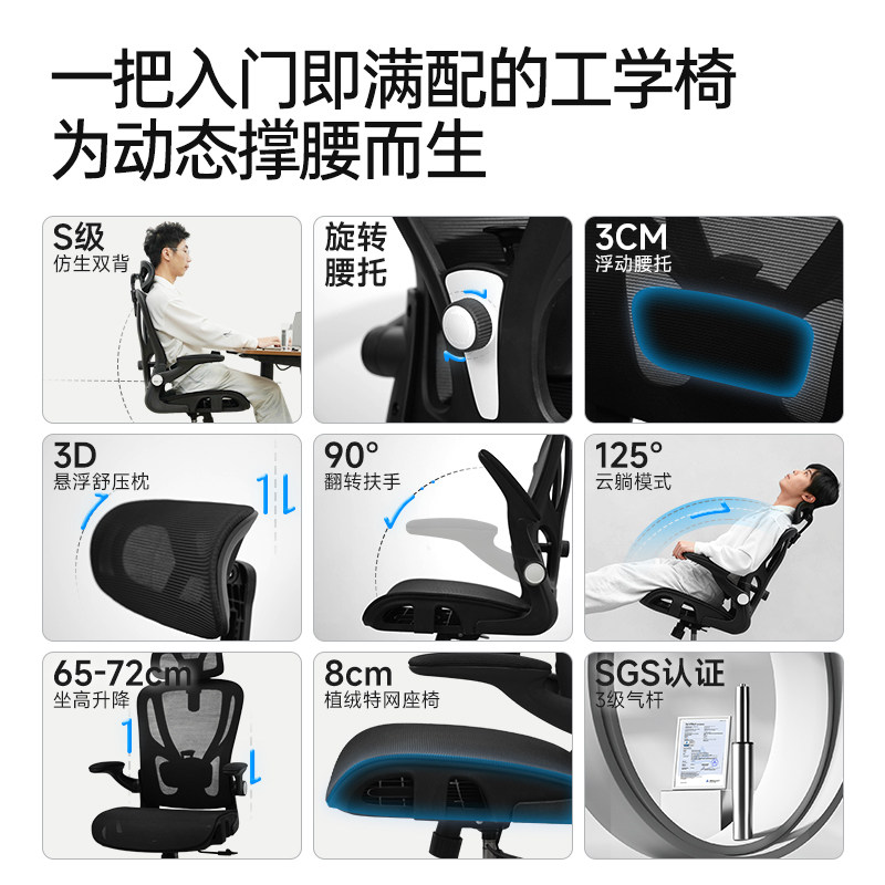 享学人体工学椅电脑椅家用办公舒适久坐护腰靠背椅座椅电竞椅子