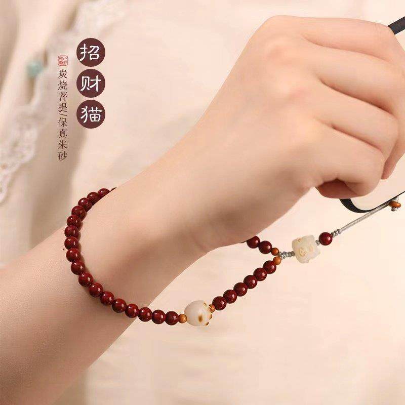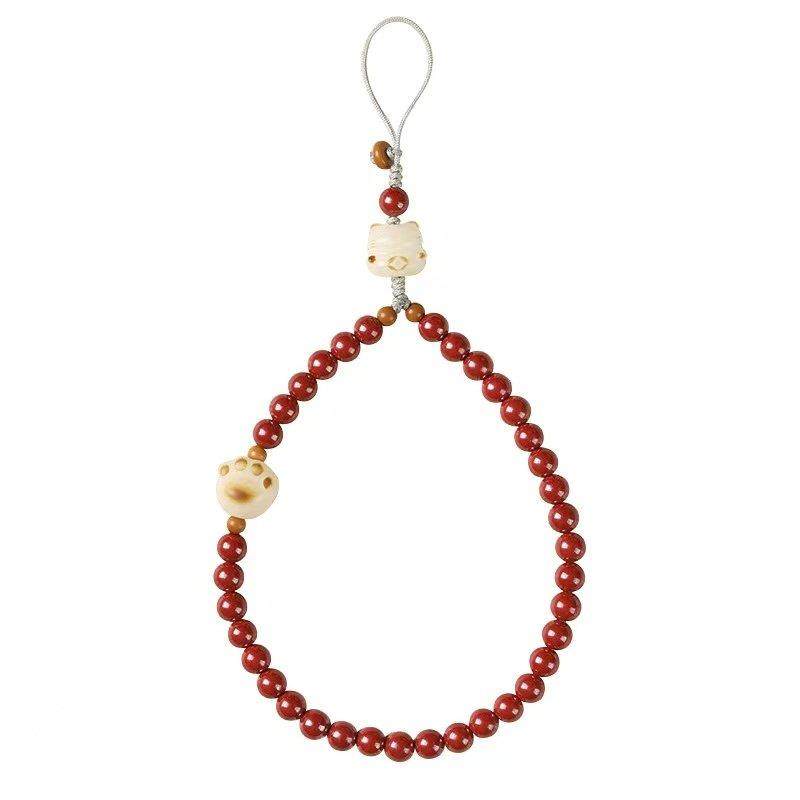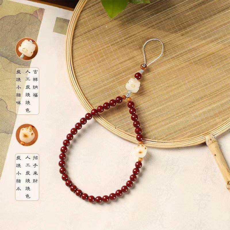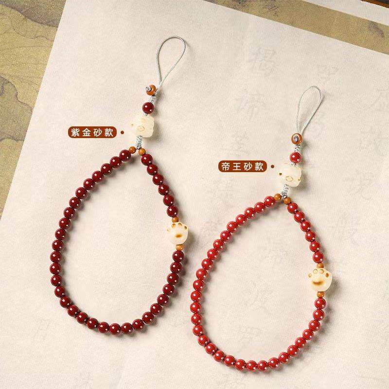 古风朱砂手机链挂绳吊坠挂饰串珠猫爪挂件手机壳本命年手腕绳男女