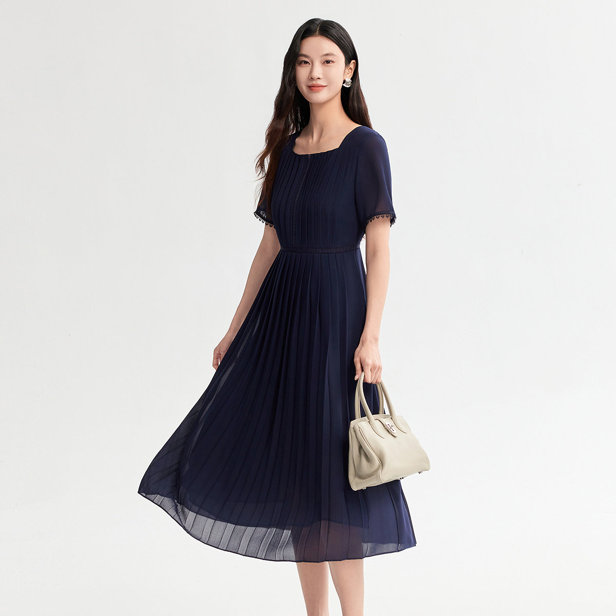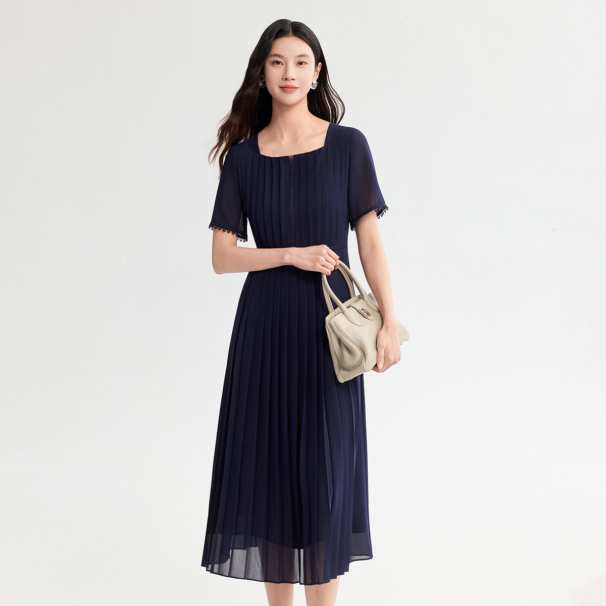 FINITY菲妮迪赫本风连衣裙26年夏季新款简约优雅通勤短袖长裙女装