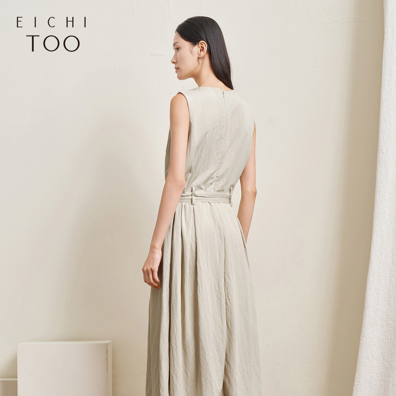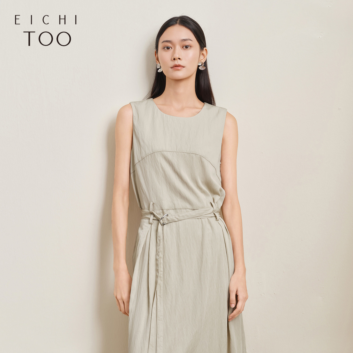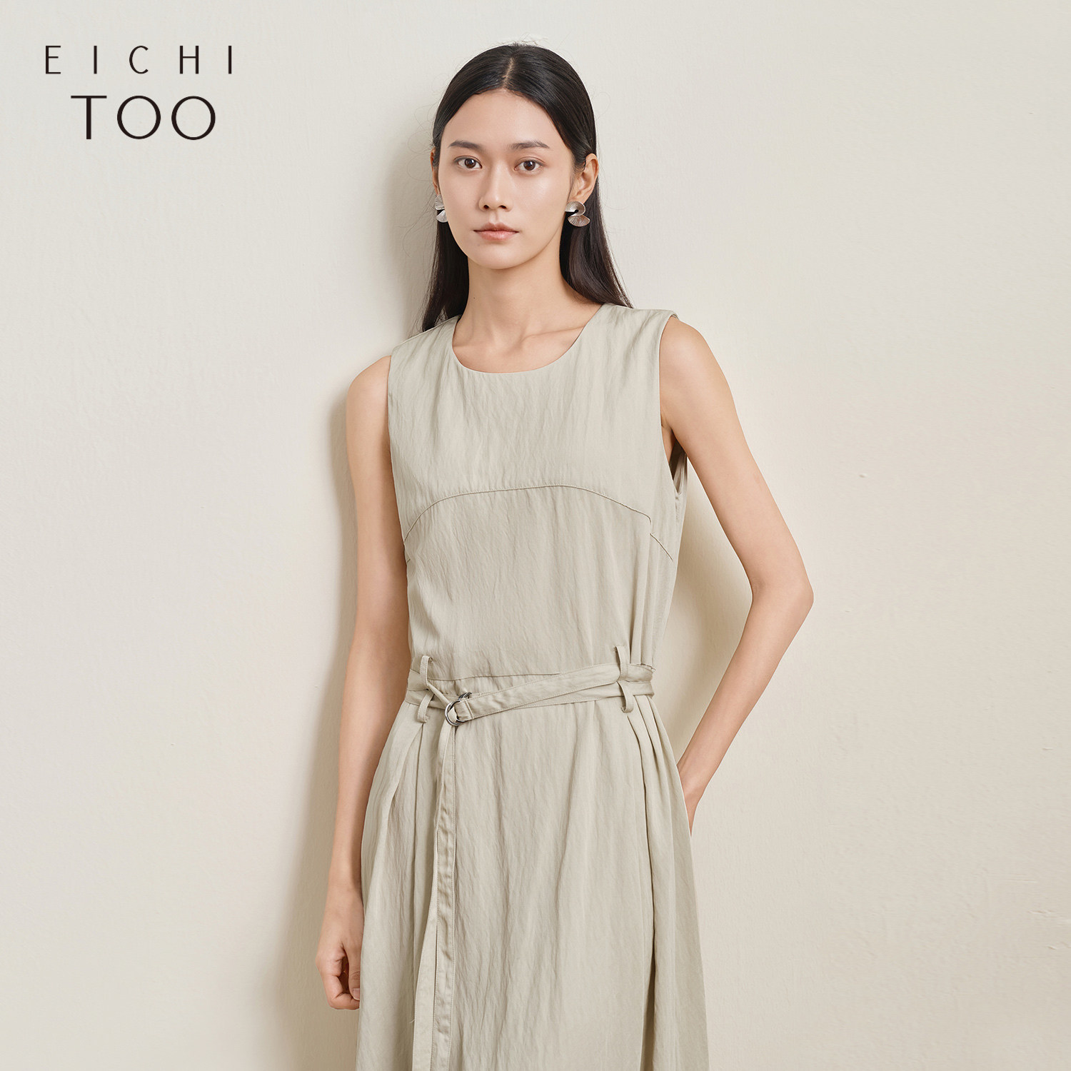 爱居兔高智简约无袖连衣裙夏季新款女收腰显瘦优雅大摆长裙