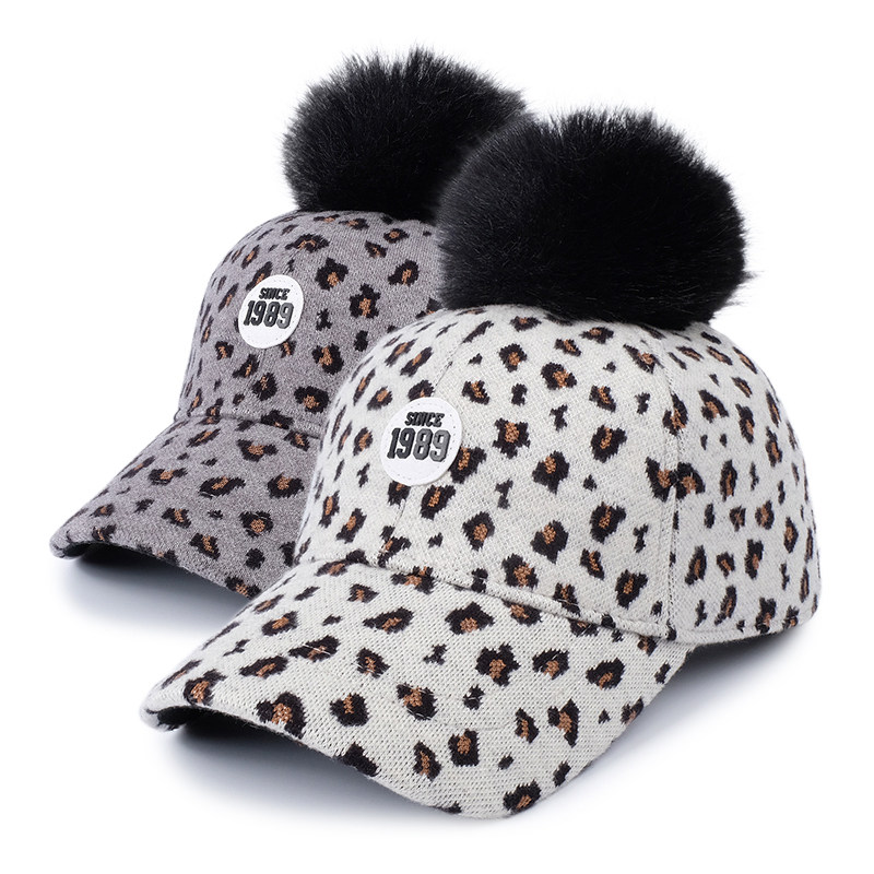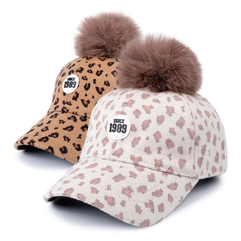 秋冬款中大童鸭舌帽女宝宝棒球帽遮太阳防风保暖豹纹复古儿童帽子