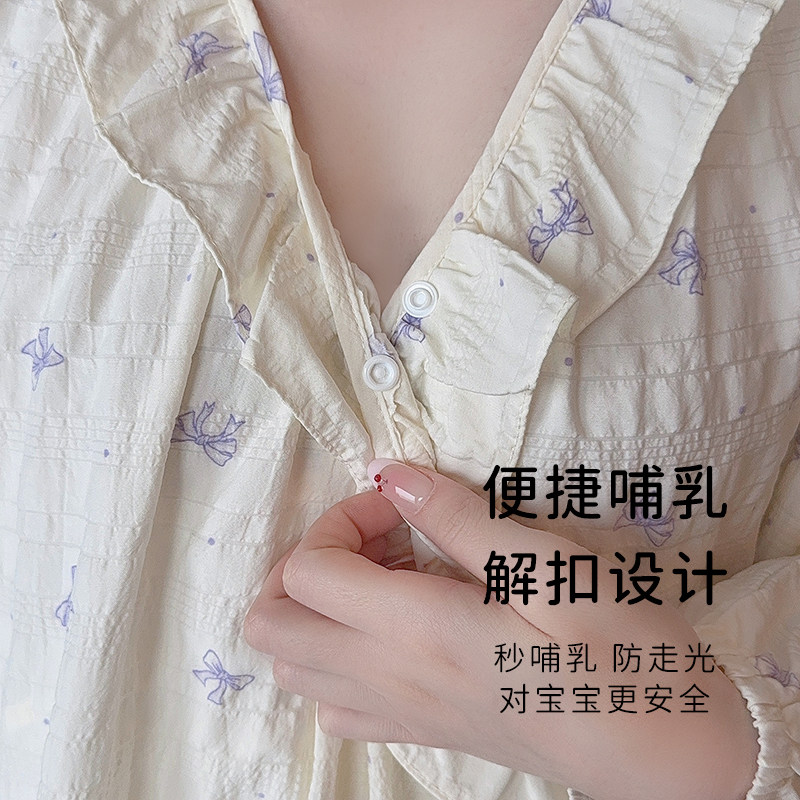 带胸垫奶香风纯棉月子服春秋季产后产妇孕妇睡衣秋冬款哺乳喂奶衣