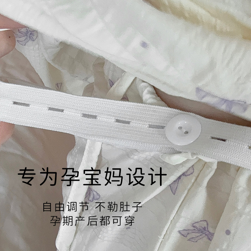 皱棉纱月子服夏季薄款产后纯棉8月份6产妇哺乳孕妇睡衣夏天家居服