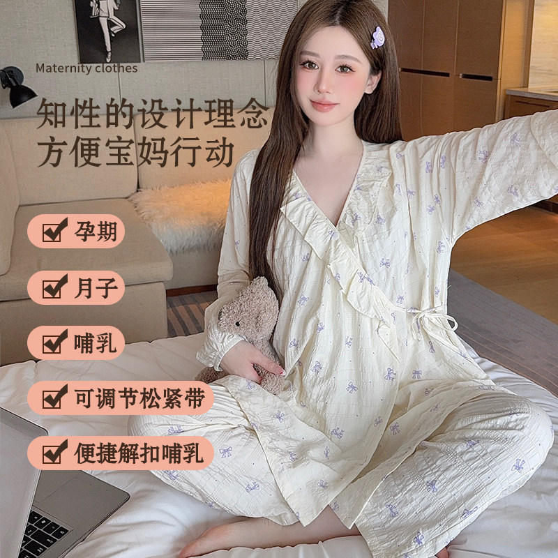 月子服纯棉春秋冬季产后12月份孕妇睡衣可外穿喂奶产妇哺乳家居服
