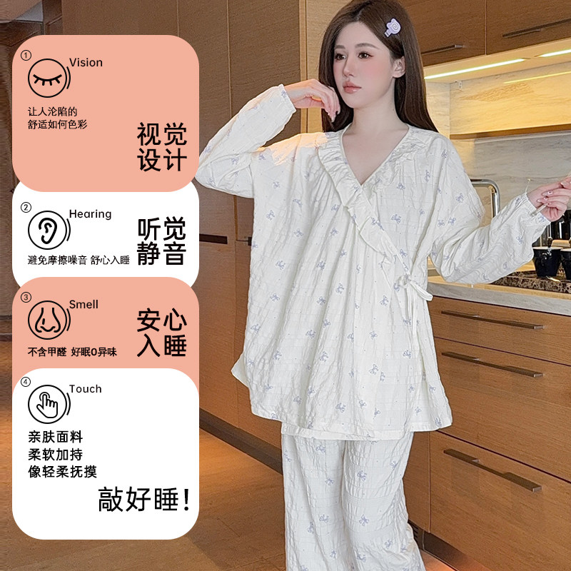 空气棉月子服秋冬季纯棉产后12月份全棉吸汗喂奶产妇哺乳孕妇睡衣