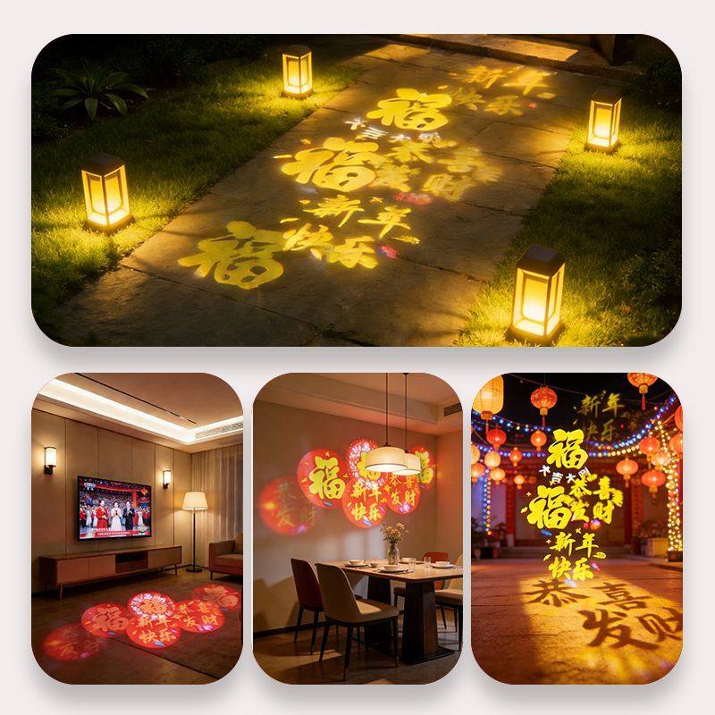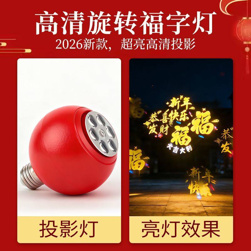 七彩旋转变色福字灯泡新年节日喜庆投影氛围发财灯led装饰气氛灯